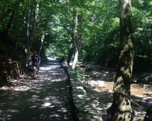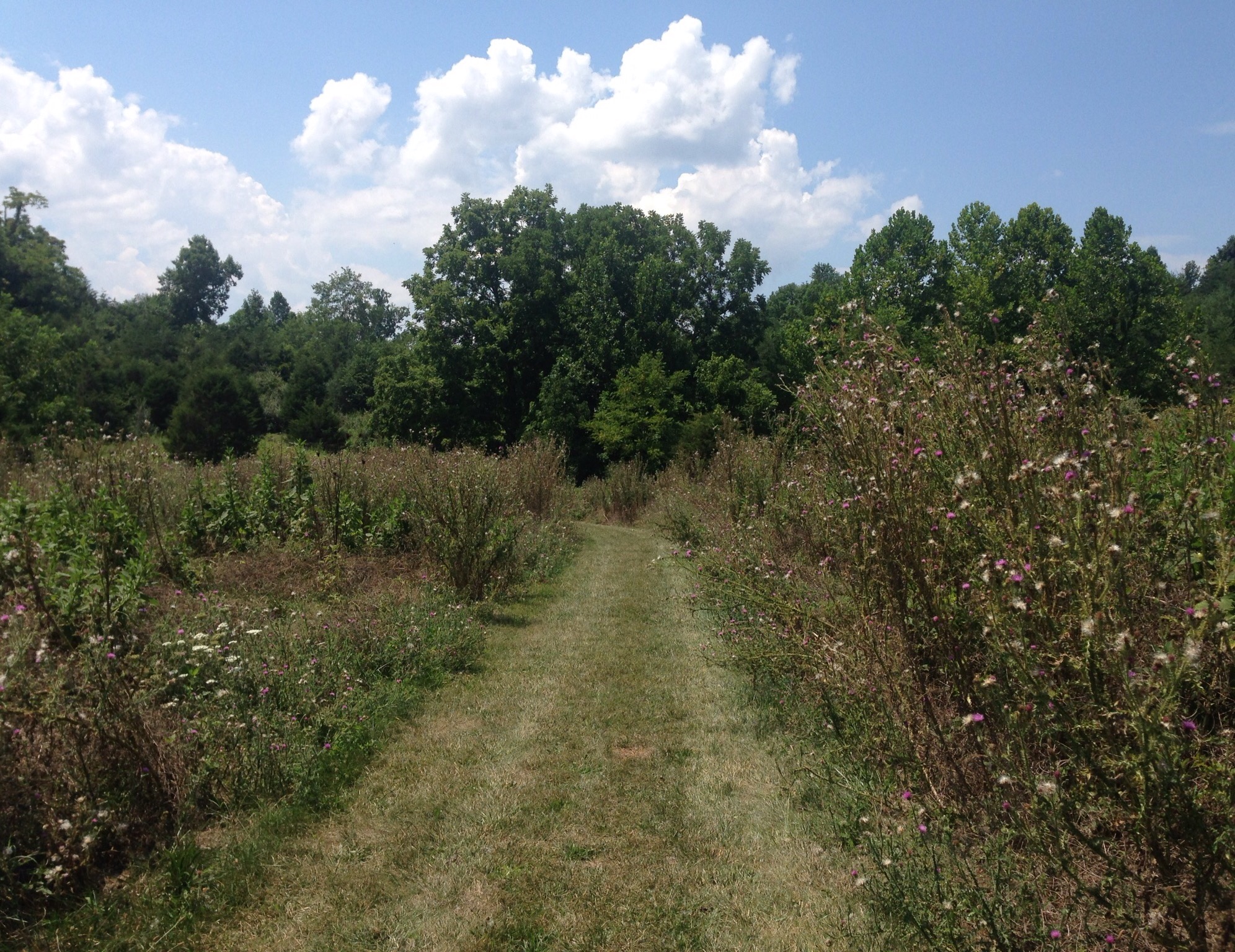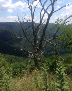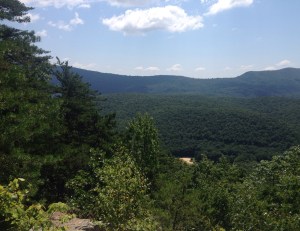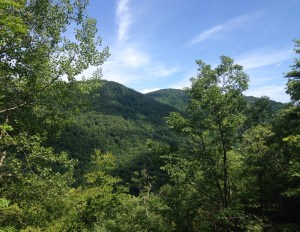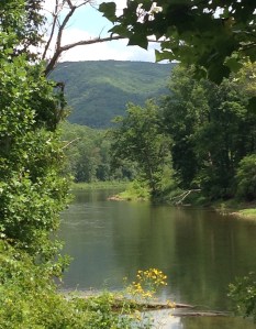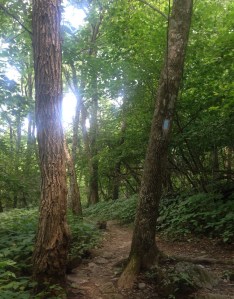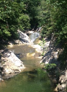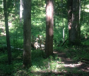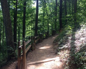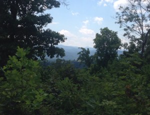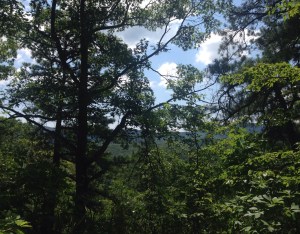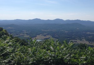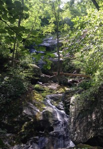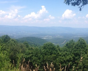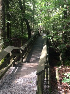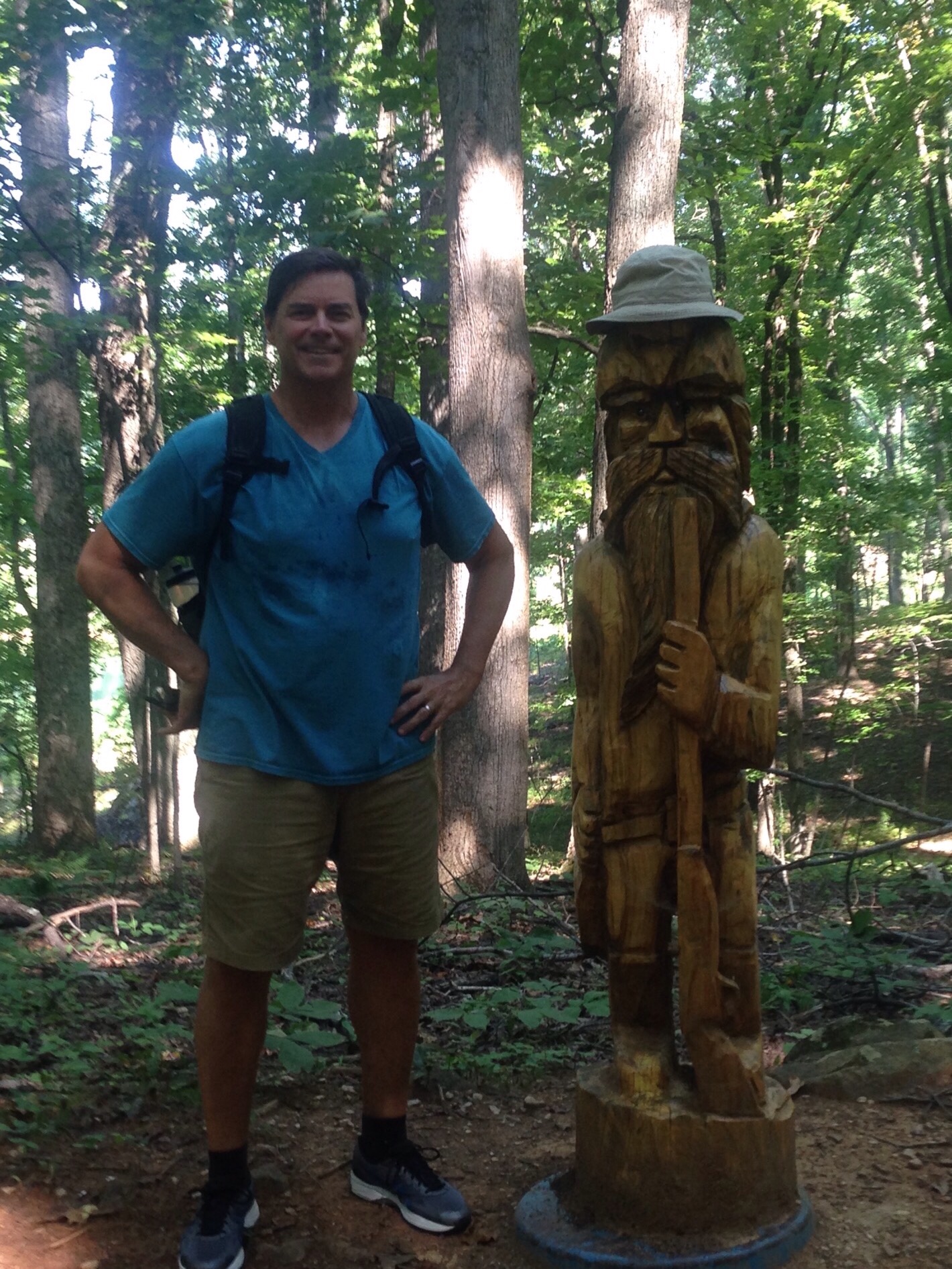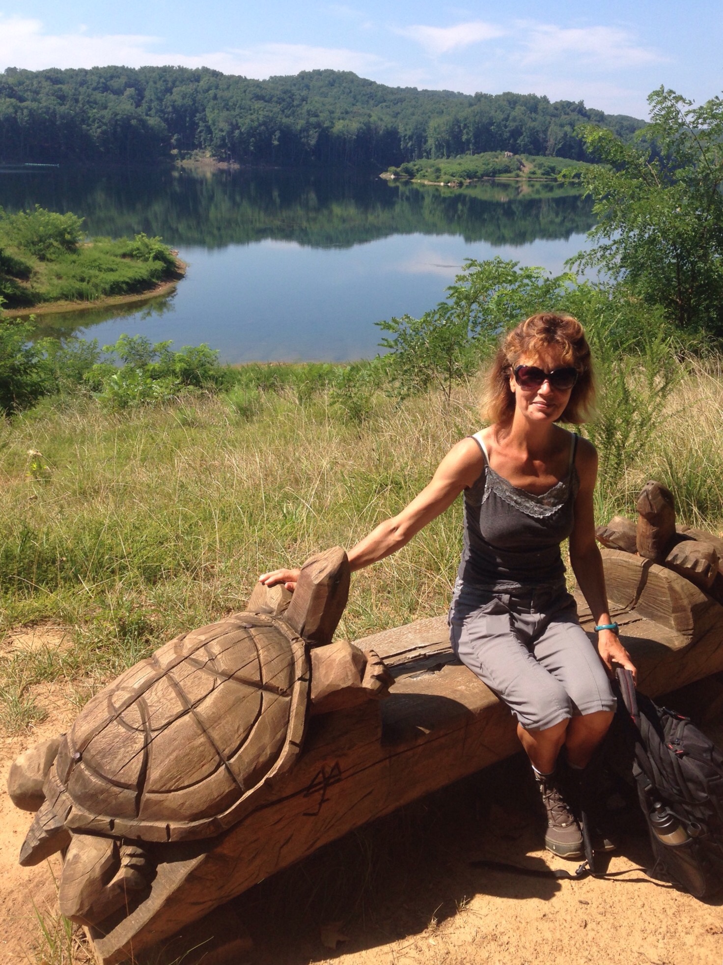 On Monday, we traveled about 45 minutes southwest out of Charlottesville to the Sherando Lake Recreation Area. This is a beautiful park in the Blue Ridge Mountains where you can swim, hike, picnic, and/or camp. There were a number of families enjoying the lake, but Bob and I had a great 3+ hour hike by combining a number of trails. It was $8 per car to enter. We have had lovely hiking conditions — temps in high 80s or low 90s with LOTS of shade.