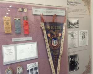 Setting the stage — the entry into the museumThe gorgeous parsonage that the Wilson family got to use while they were in Staunton. It was used as the church parsonage through the 1920s when it was purchased to use as a museum.The building, immediately adjacent to the Wilson home, that houses the museumThe Pierce-Arrow automobile that was used as the presidential limousine during Wilson’s presidency. It is still used in annual parades.Memorabilia that claim Wilson as Staunton’s favorite sonThe spire of the First Presbyterian Church (still active) as seen from the Wilson home