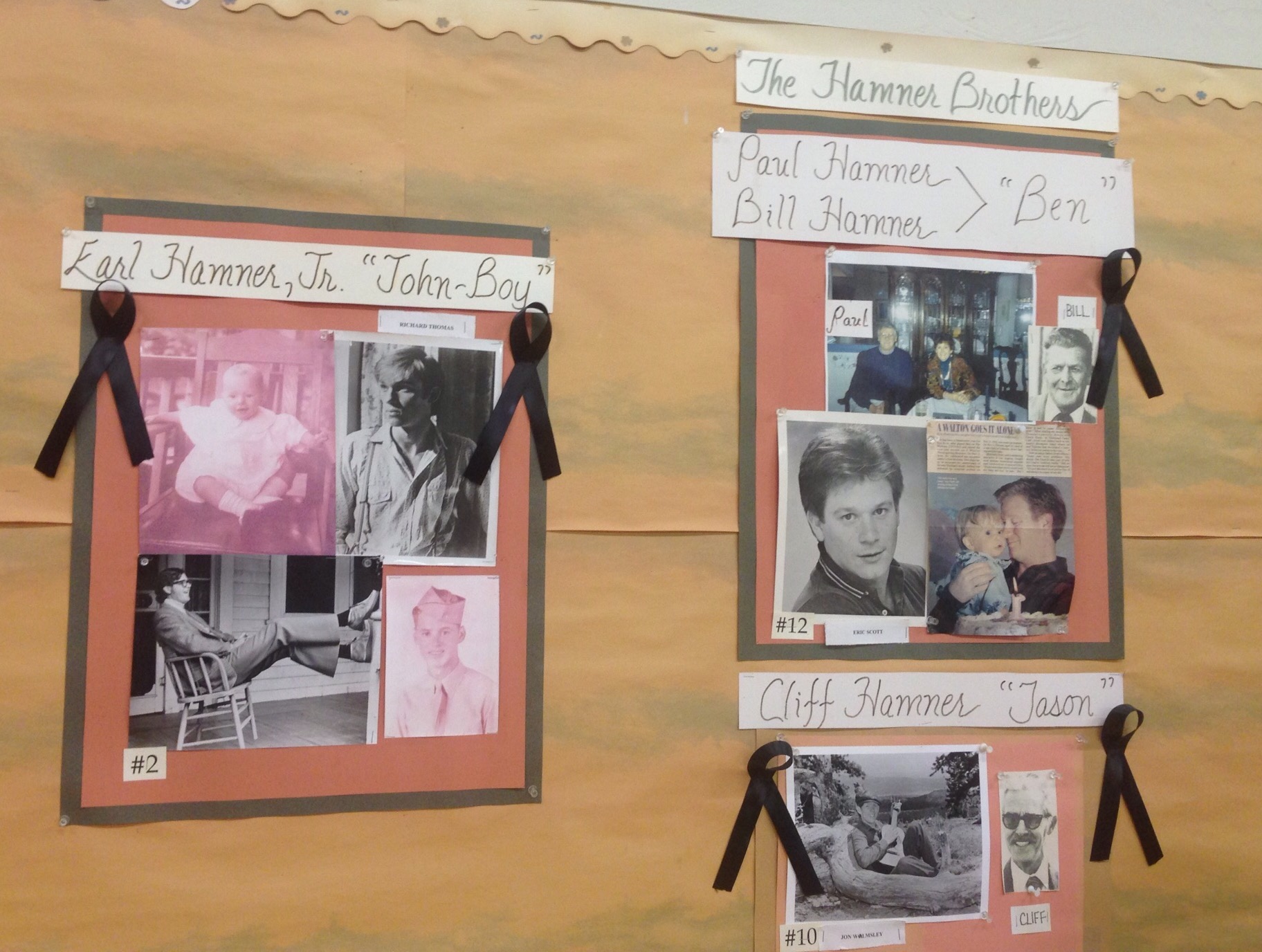 The museum is housed in the school which Earl Hamner attended. The building also serves as the area community center.A photo of the castThe recreation of John-Boy’s bedroom from the showThis bulletin board showed which Hamner sibling each actor portrayed. The black ribbons indicate that individual is deceased.The Hamner homeOther sites in the area that we visited included some of the many, many wineries, distilleries, and breweries in the area . We never did get to any of the hard cideries.