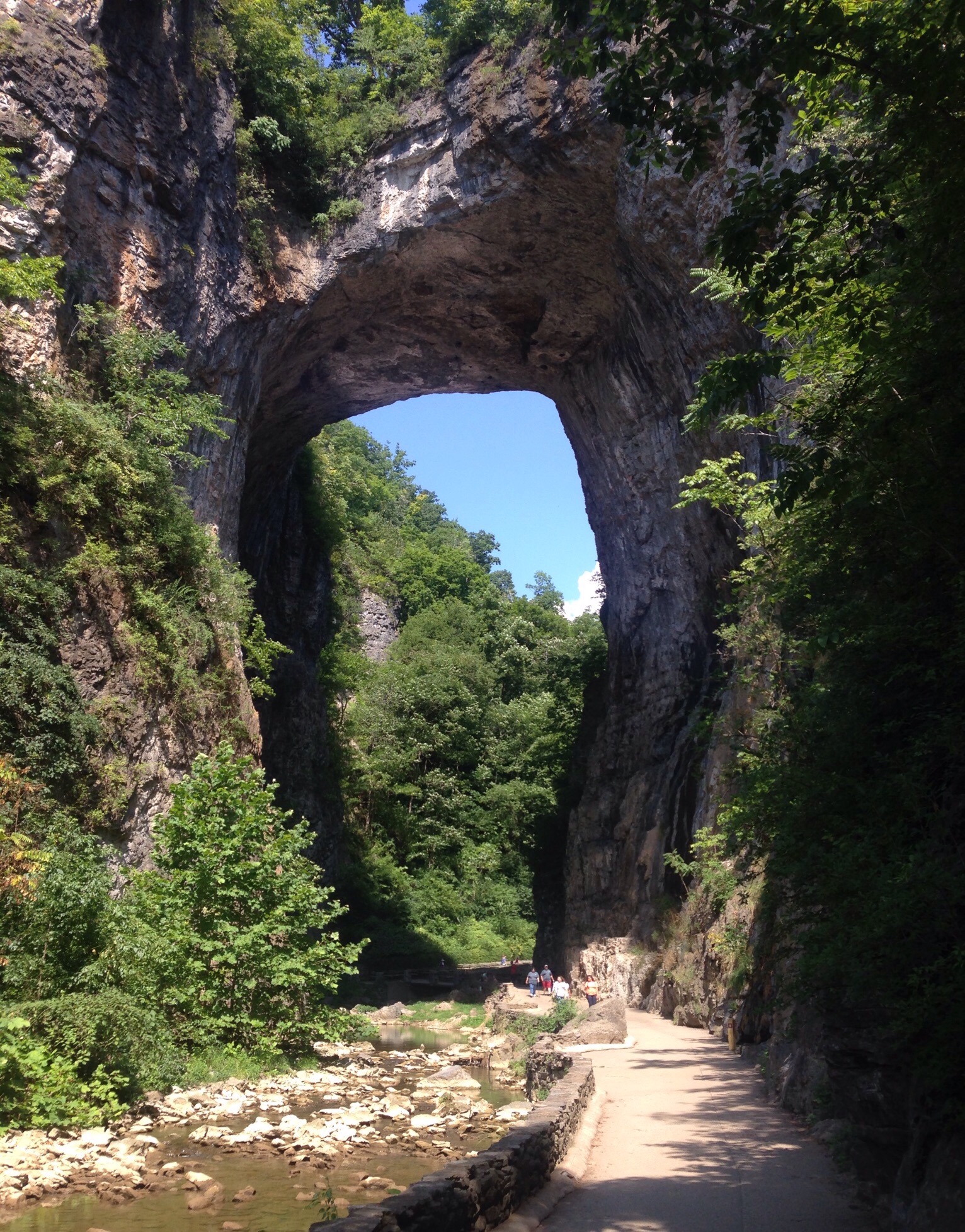 The $8/person entry fee gives you access to a main trail which takes you under the bridge, through a replica of a Monacan Indian village, into a saltpeter cave, and ends at a falls. The state park also has a couple of other trails that you can currently hike for free. Also in the town of Natural Bridge, to take advantage of the tourist traffic, is a hotel, caverns, a zoo, and some kind of amusement park.