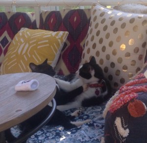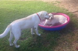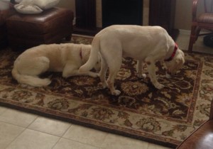 Reagan and Winter at rest after their walkWinter and Reagan enjoying their “happy hour” ice cream treat.