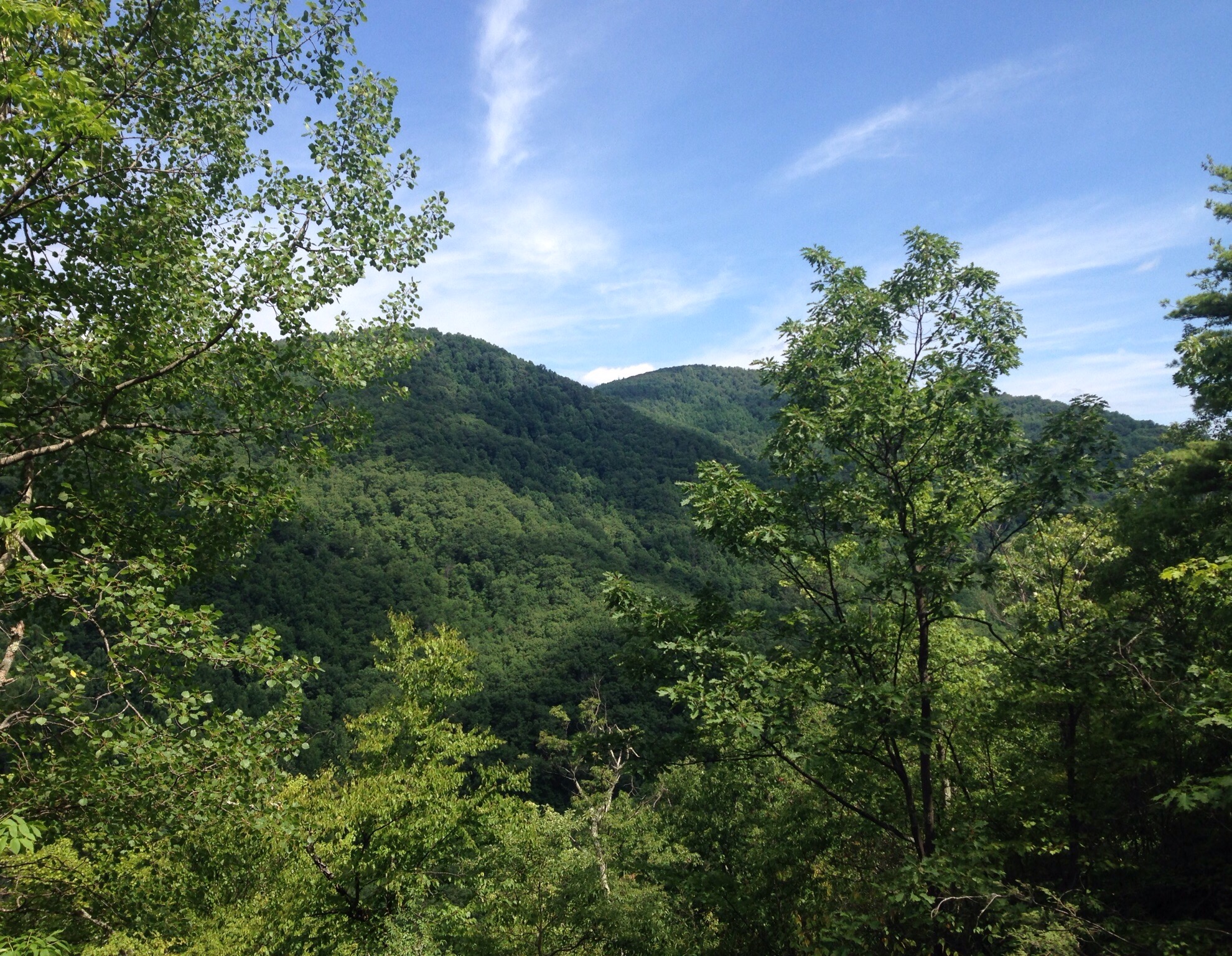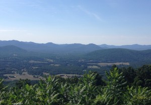 On Sunday, Bob and I headed to the George Washington National Forest in nearby Nelson County to hike Crabtree Falls. To get there, we drove part of the gorgeous Blue Ridge Parkway. This road is apparently America’s longest linear park, though free to drive on (at least in Virginia). The road is 469 miles long, runs through North Carolina and Virginia, and connects the Shenandoah and Great Smoky Mountains National Parks. We barely scratched the surface but did stop at a couple of overlooks for some photo ops.