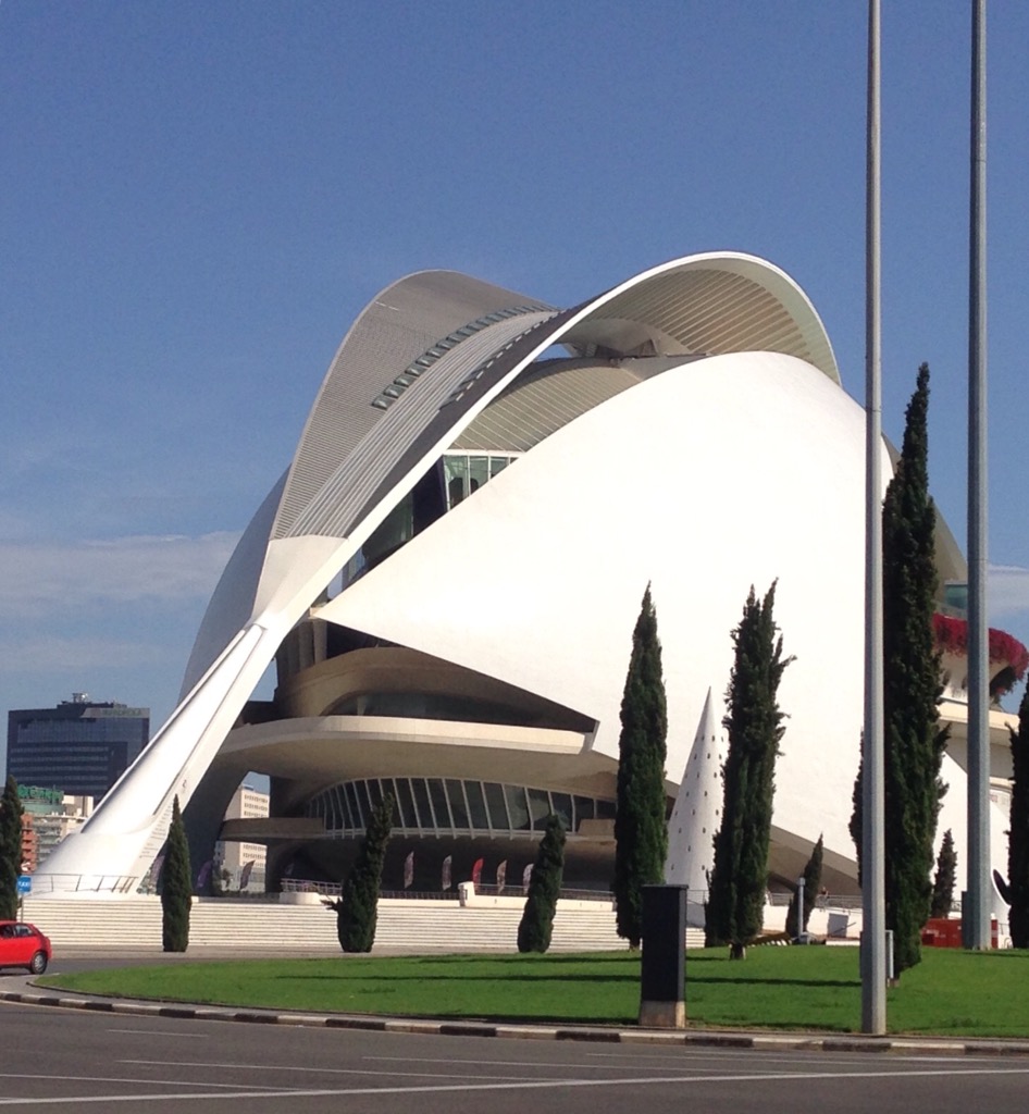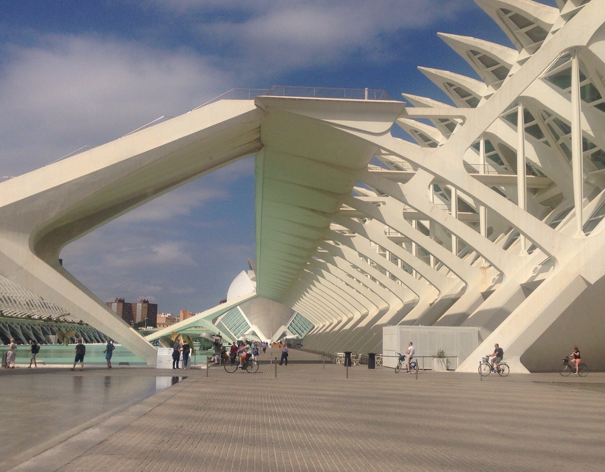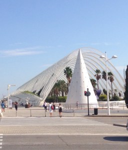 The City of Arts and Sciences is a cultural and architectural complex at one end of the garden of Túria. It was designed by Santiago Calatrava and Félix Candela. It was inaugurated in 1998 and has become Valencia’s number one modern tourist attraction. The complex consists of a number of buildings including — The Hemispheric (IMAX, planetarium, and lasrium), the Prince Philip Science Musem, the Umbracle ( open, landscaped structure with a Walk of Sculptures and outdoor art gallery), the Oceanographic (largest oceanographic aquarium in Europe), the Queen Sofia Palace of the Arts (opera house and performing arts center), a bridge, and an agora (a covered plaza which hosts concerts and sporting events).