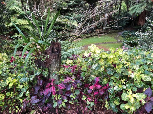 Bob found us a great pathway for our walk about. A treeway actually. It was lovely and made you feel far removed from the city. Signage stated that is a recovering green corridor to protect two threatened ecosystems– lava flow forest and wetland. Yep, not in Texas anymore.