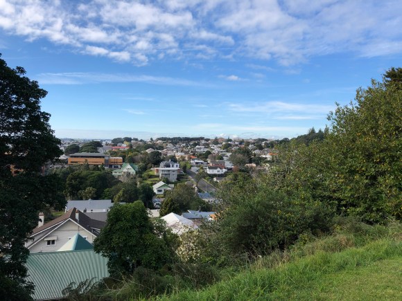From the Alberton home, we summited Mount Albert which was just a couple of blocks from the home and used to be part of Mr. Taylor’s estate. It also used to be larger. The top half of the original mountain was removed for quarrying. The top now has large green spaces, a couple of soccer fields, and what seemed to be an empty pasture. It seemed to be a popular place to take dogs.