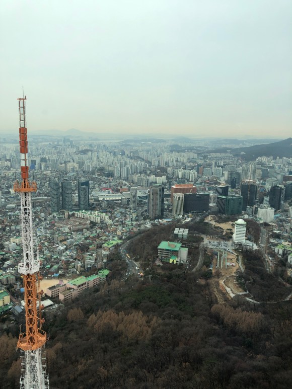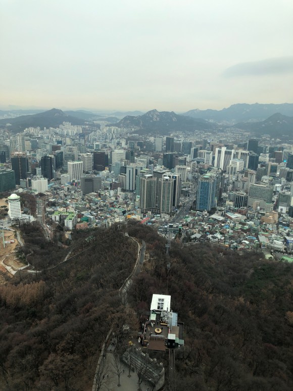 While Friday wasn’t the sunniest of days, we thought we should try to get an overview of Seoul from the N Seoul Tower in Namsan Park. This was just a short but interesting trip from our hotel.