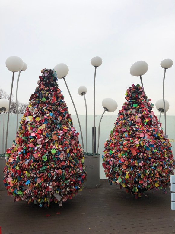 After the incline elevator, we took a cable car up to the top of the Namsan Park. One of the first things we noticed in the park besides the scenery was the locks. It definitely has the most locks of any place we’ve visited. They have even made Christmas trees out of them.