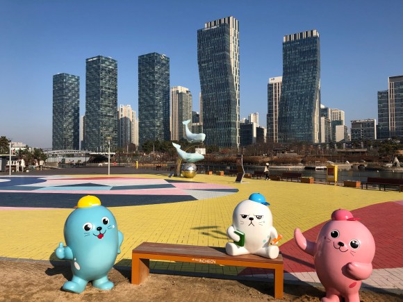 On Saturday, we headed out of Seoul proper for the suburb of Incheon, and more specifically Song-Do. It was about a 1.5 hour ride by train with a couple of changes. This city/ region has the most extensive network of metro lines that we’ve ever seen.