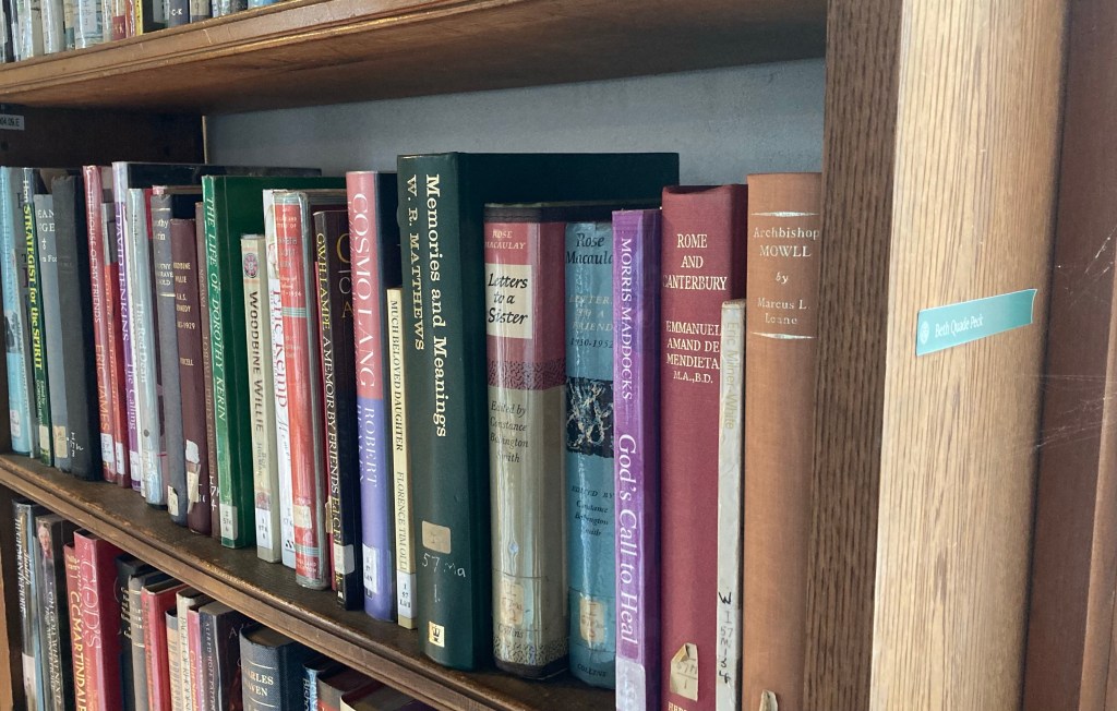 They don’t have a fancy name plate, and they didn’t include Bob’s sweet note, but I am still very happy to have a shelf. I would stay and read through the books and dust the shelf if I could. Bob and I both noted (he saw it first) that one of the books on my shelf is “Letters to a Sister,”letters from Rose MacCauley to her younger sister, Jean. It felt a bit like a sign.