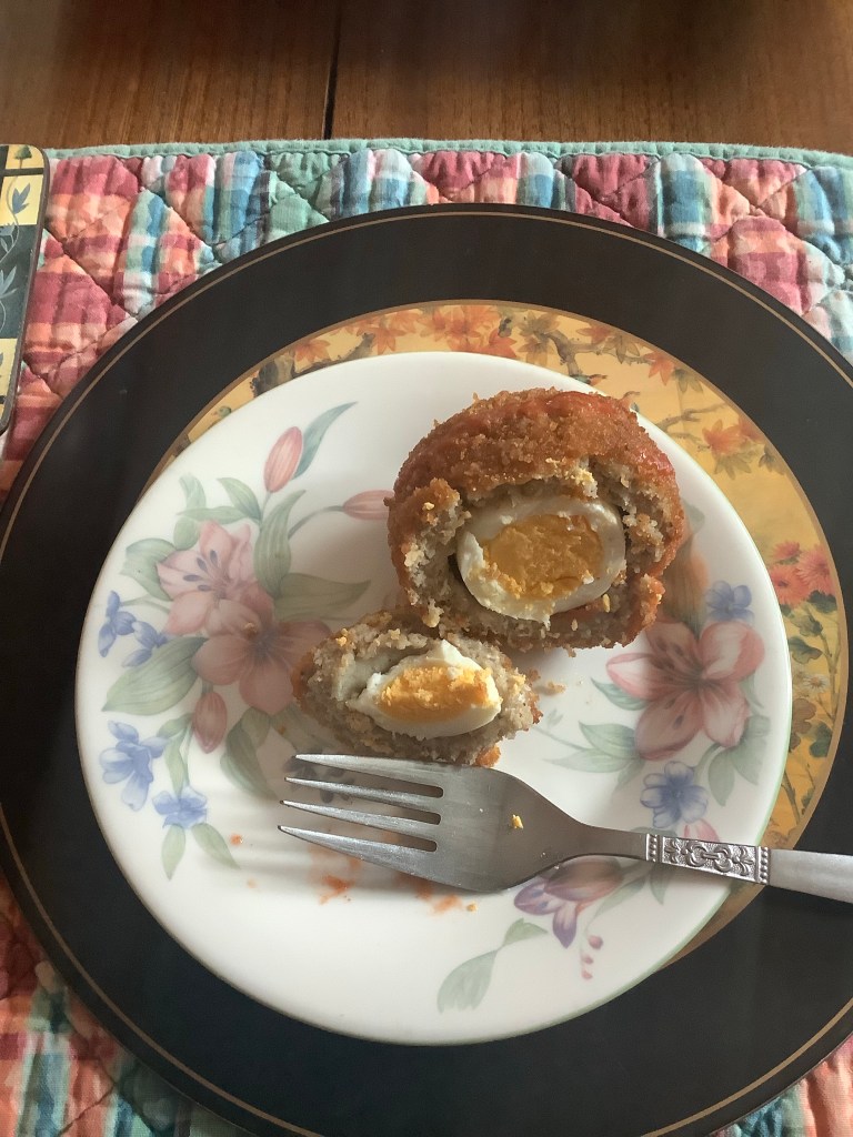 Crispy Haggis Tweeds—pretty yummyA cut open Crispy Haggis TweedPart of the menu at a local place in Thornhill, Scotland One of the many bird feeders we fill each morning.I continue to have my fill of Scotch Eggs—love them.A great boy, Otter.