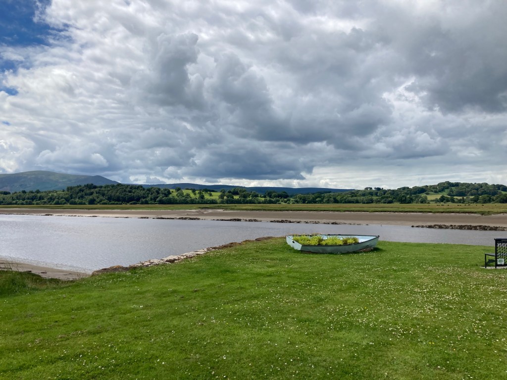 On Sunday, they took us out to lunch at The Boathouse on the River Nith near where it empties into the Solway Firth and across which you can see England. The restaurant and the views were lovely.