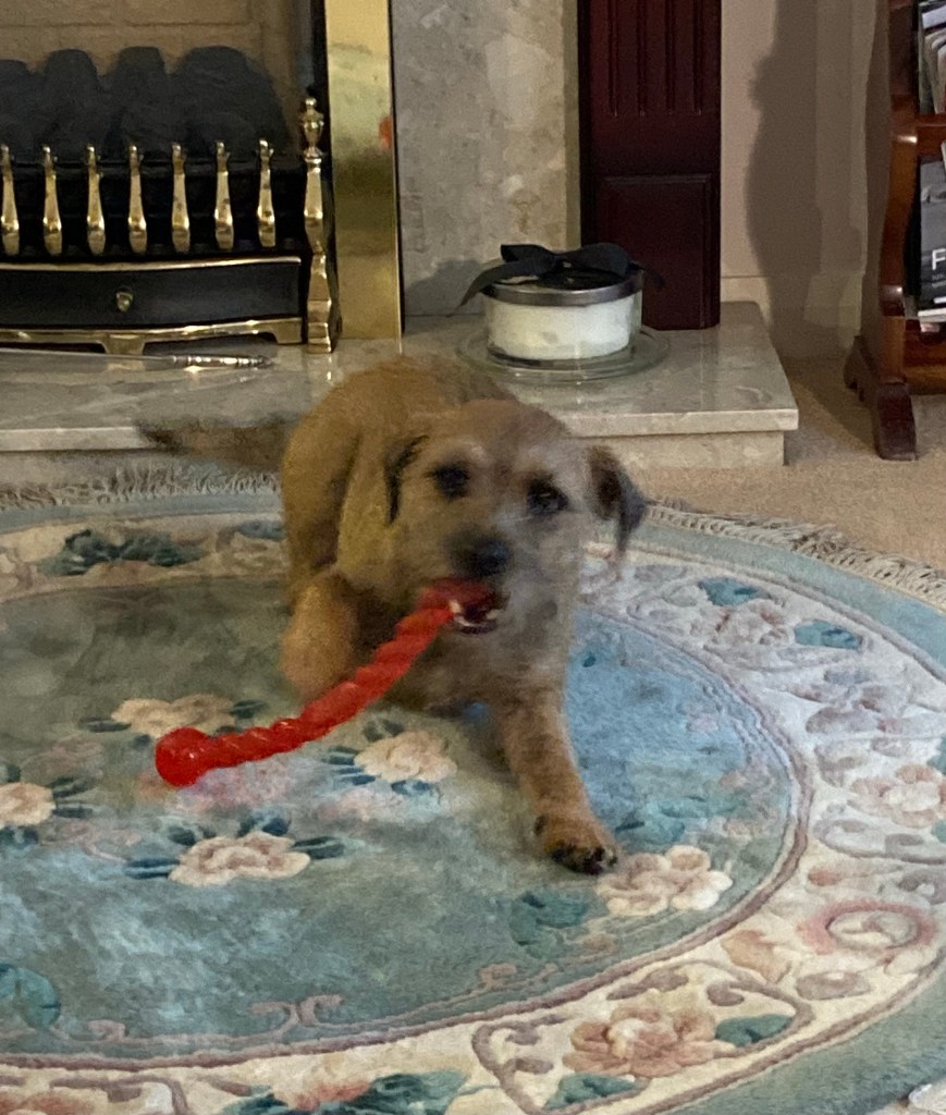 But the best part of our visit was meeting Otter, their new Border Terrior rescue, who they received in September.