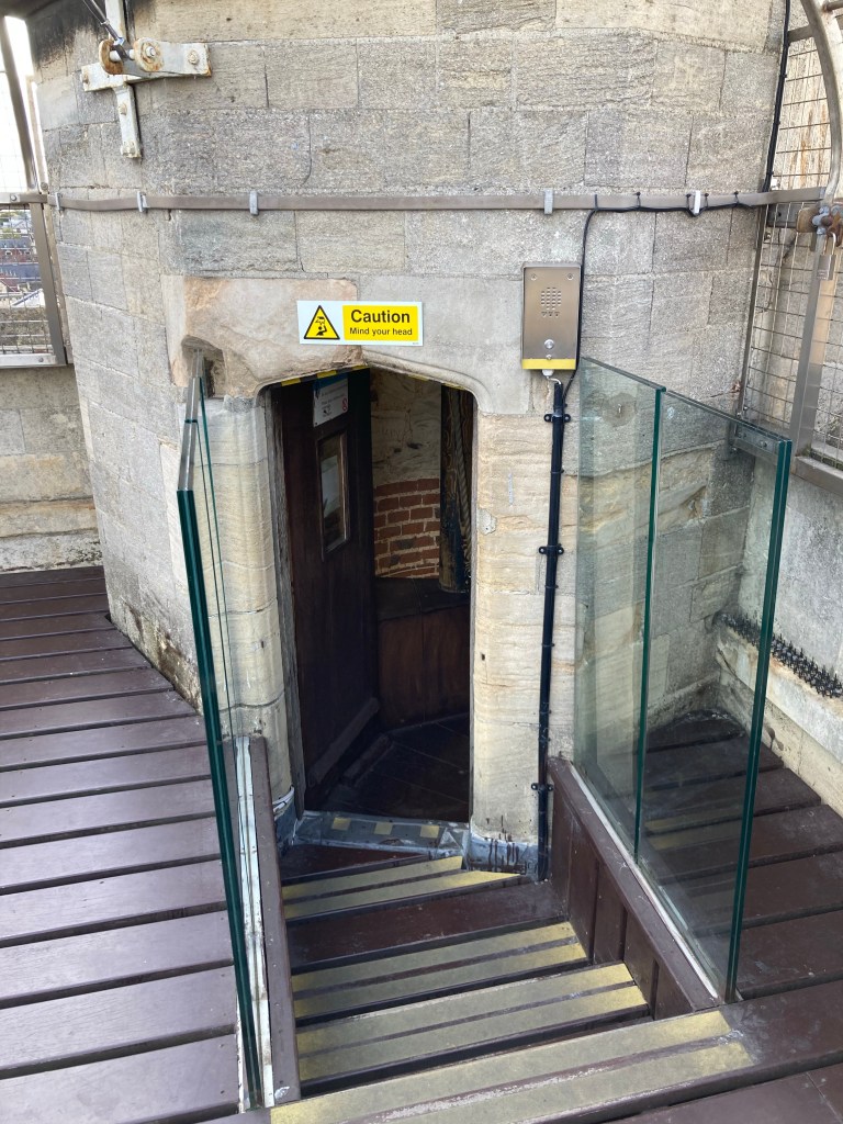 While Bob (and his cane and unfortunately sore hip) waited outside, Beth climbed the 123 steps to ascend 35 meters to the top and see Cambridge from above.