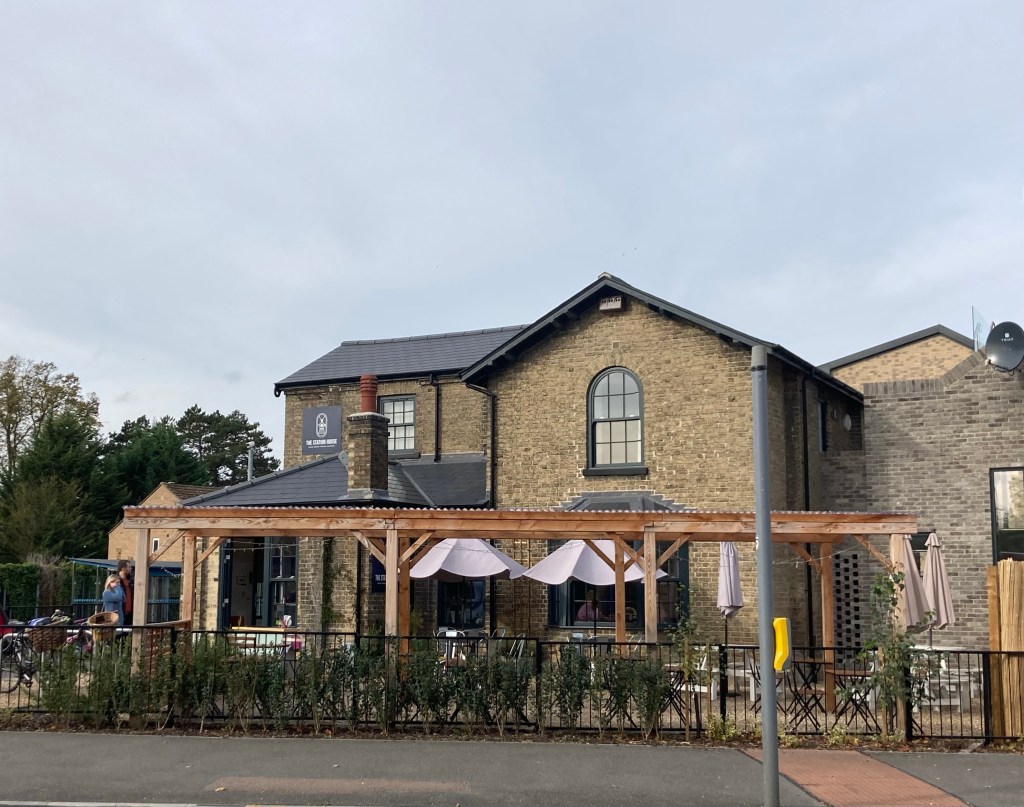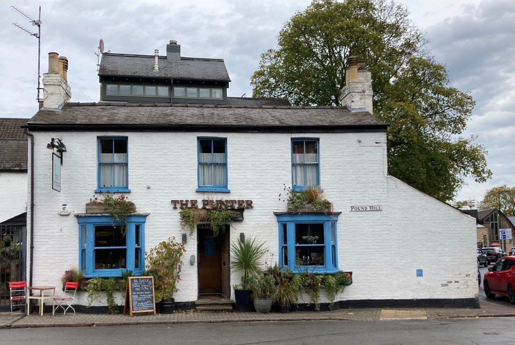 First things first, planner Bob has found us a bus we can take from Cambridge all the way to Heathrow for when we leave the middle of next month. We decided we’d walk to the bus stop to see how the walk might be for us to catch the bus. The walk wasn’t bad at all, took us in the direction of the town center, and on the way Bob saw this.