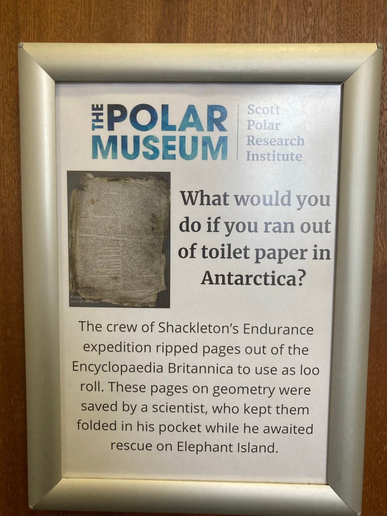 Today has been a rainy day, so we thought it might be a good day to check out one of Cambridge University’s free museums. The Polar Museum is fairly close to the house, so we headed there about mid-day for a visit. The museum presents information on the history of arctic and Antarctic exploration as well as polar artefacts, photographs, and written materials.