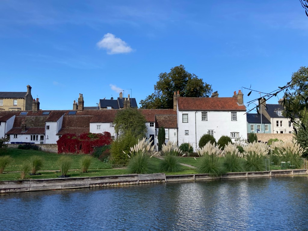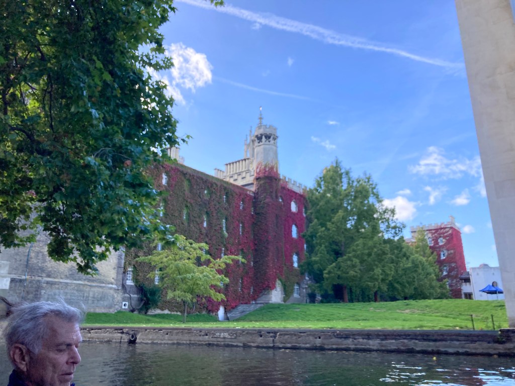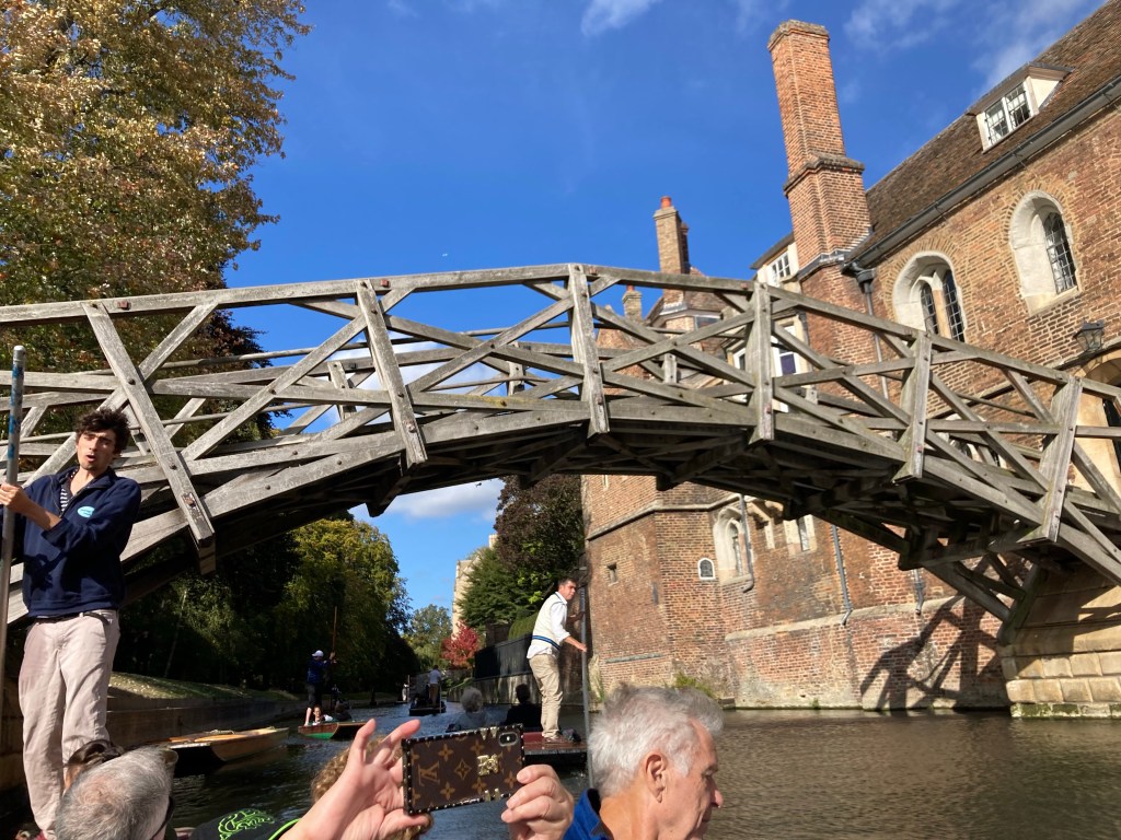 Bob and I had a lovely afternoon, starting with a 35 minute walk to the Cambridge Punt Tours to catch our 1:00 pm tour along the River Cam. If Wikipedia is to be believed, the River Cam is the main river running through Cambridge and runs for a total of 69 kilometers. If our punter (poleman) is to be believed, Cam was the Viking term for river, so we were on the River River this afternoon.