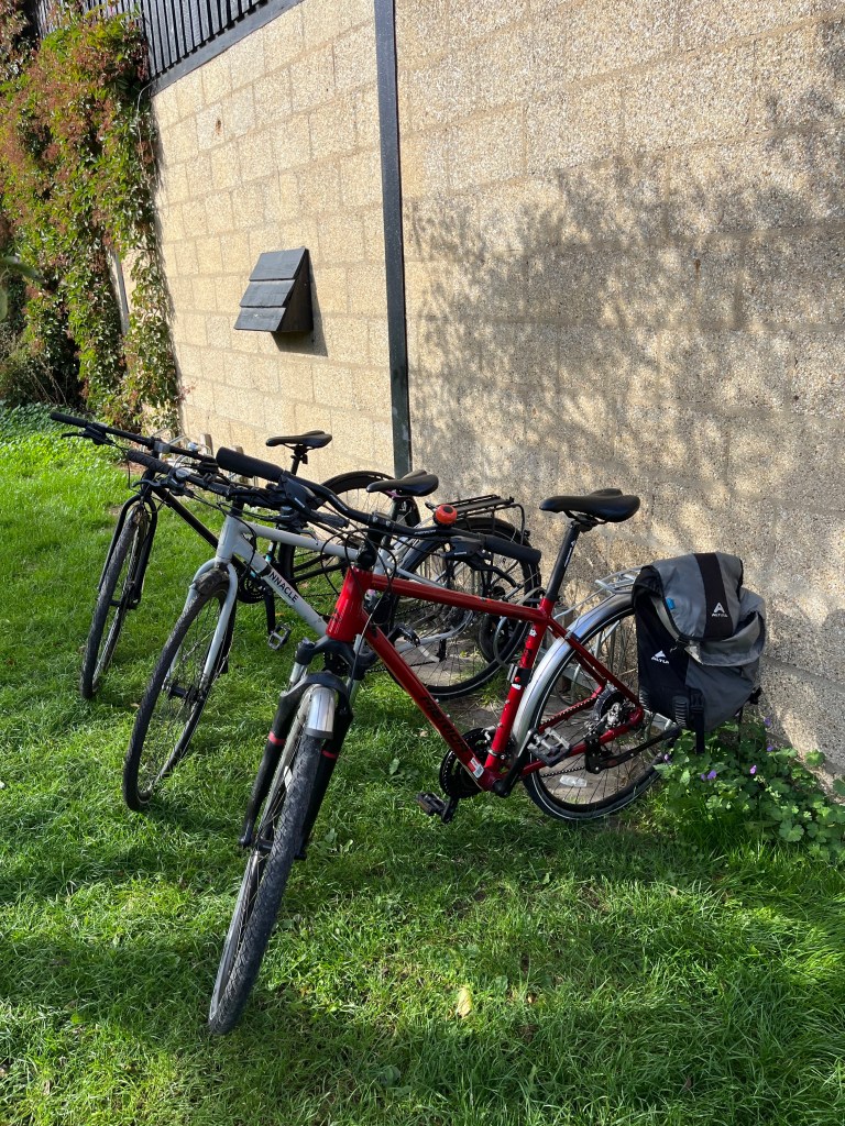 After an easy (though slightly uphill and into the wind) four mile ride, we arrived at the farm shop. The ride took a little longer than normal, as it was our first real ride on the bikes, and we wanted to be extra cautious with traffic, and we stopped for photos.