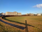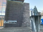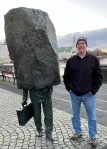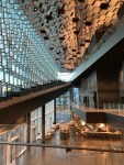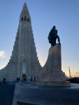 Leaving our hotel before sunrise at 10 amOne of many sculptures around townLooking across City PondBob and the Unknown Bureaucrat sculpture near city hallA walkway across City Pond to City HallAnother impressive building and statueAnother building we likedA penis museum?! We didn’t go in.The beautiful Harpa Concert Hall and Concert CenterThe restaurant in HarpaLooking down towards the restaurant and up towards the next level with seating on each tier on the way upA black rock beach along the sea wallThe Sun Voyager sculpture Looking across to Mount EsjeThe former French Consulate where Reagan and Gorbachev held their summit in October 1986 on nuclear disarmament — and a rainbowHallgrims ChurchLeif Ericsson statue in front of the Hallgrims ChurchPerlan Museum View of Reykjavik looking towards the domestic airport and university A natural marsh area near the university The main administration building for the University of Iceland and a very tall shadow of meA bench statue near City PondThe National Gallery of Iceland Street art on the street where we’re staying A view of the Harpa at night