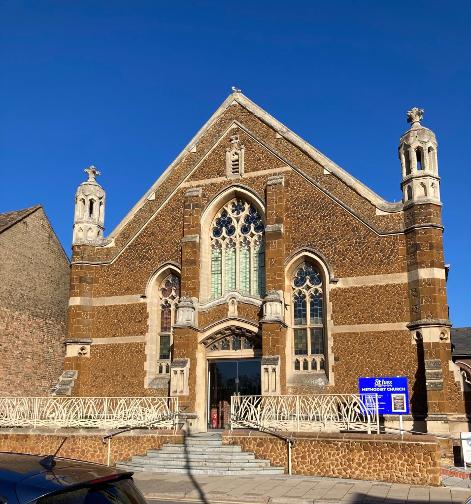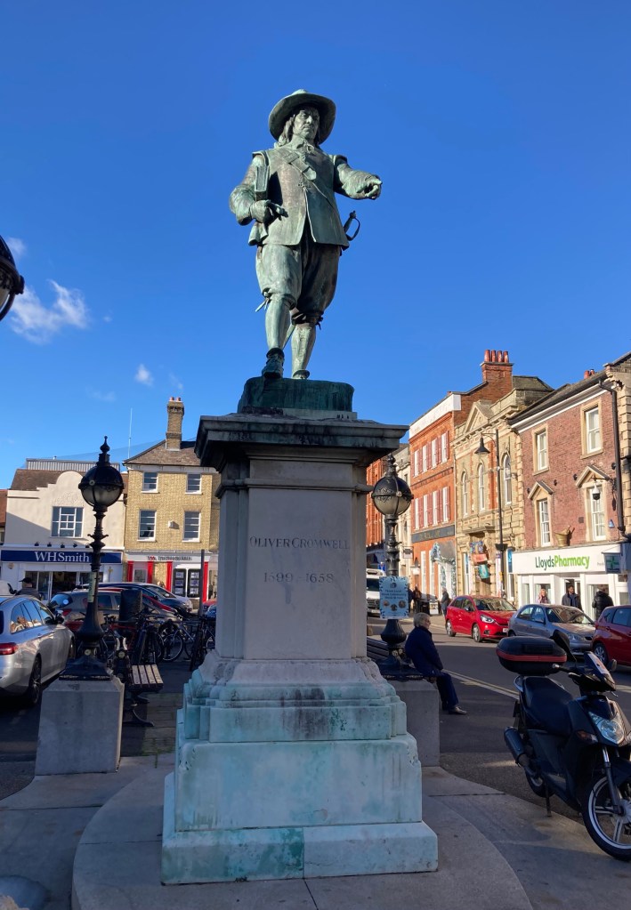 On the guided buswayView from the busA park and ride station between Cambridge and St IvesA biker on the bikeway alongside the guided buswayAnother view from the busSt Ives Methodist Church. I read on a plaque that John Wesley preached in St Ives in 1774.The Great Ouse River that runs through townPart of the Ouse Valley Way walk, a 150 mile route along the Great Ouse RiverThe Norris MuseumNarrow boaters on the riverDiners along the riverAnother view of the river — lots of ducks!A way finding signA statue of Oliver Cromwell, one of only 4 in Britain. He led the parliamentary forces against the Royalists during the English Civil War.A cute hotelAnother cute building adorned with poppies for Remembrance DayA war memorial with more poppies