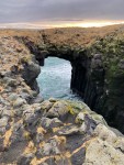 Heading outSome seals at Seal IslandA photo taken by of me by one of the other women on the tour who was nice enough to share it with me.The Black Church, a representative of a typical rural church. The original black color would have come from tar.The start of a lovely coastal walkSome of the rock formations The first stone bridge Cliff sideThe second stone bridge Heading towards a black sand beachMore of the beautiful beachCloser to the surfAn amazing stone formationLooking back at the Snaefellsjokull GlacierThe famous (from Game of Thrones, we’re told) Kirkjufell Mountain and nearby waterfallA cute town near the mountainDriving back through the 6k tunnel under the sea before we hit the wild weather