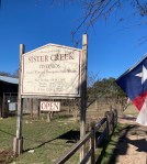 Sign with the Texas flag. The winery is located between the East and West Sister Creeks.The tasting room housed in an 1885 cotton gin. The winery opened in 1988.