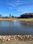 As we followed the helpful signage towards the springs, we saw this.Which was further explained by this. A lovely setting for a frisbee golf course!Here are the springs. The sign is apparently near here, but we missed it. Luckily, we have time to come back.The beautiful lake and fountain on campus near the student center and carillon.Crossing the bridge to the student centerInside the student centerA view from the second level of the student centerCraig Hall