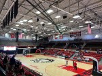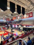 Bob buying tickets to the gameThe BulldogWalking into the gymnasium Introducing the High Point PanthersMood lighting for the introduction of the GW BulldogsSome of the banners of honor and the pep bandCheerleaders doing a lift that quickly fell apart though no one was hurt and they successfully completed other lifts later.Another look at the cheer squadBanners for the other schools in the Big South are hung in each corner. This is how we discovered that we’d already been on campus at another Big South school.Artis Gilmore’s All American jersey from his time at GW. He played in the ABA and then the NBA for 16 years for 4 different teams. He was inducted into the Naismith Memorial Hall of Fame in 2011.