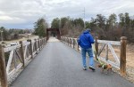 A map of the trail with various resources noted along the wayFinal (or in our case initial) mile marker on trailBridge over a railroad crossingThe railroad The path (asphalt and not concrete!)Leaf decorations A small cemetery in Forest CityThe bridge over Highway 74Shout out to John Condrey. The trail is an awesome resource.Cooper checking things outHeading back to the car