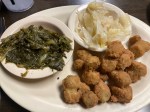 I went Southern — steamed cabbage, turnip greens, and fried okra.