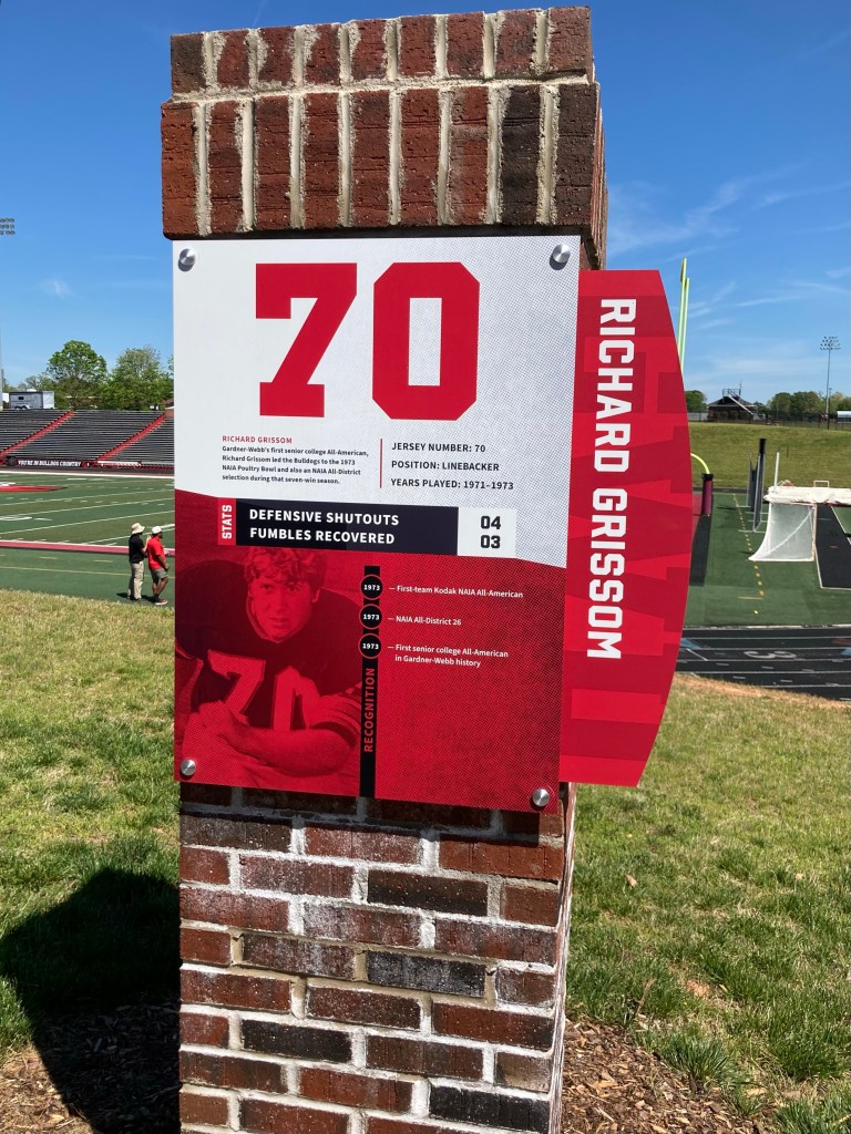 Walking up to the grandstands, there was a series of plaques about various football players or coaches of note at GW. See below.