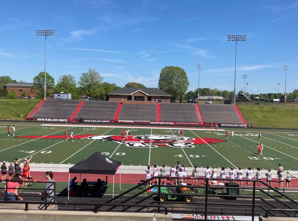 This afternoon, Bob and I took advantage of the 70 degree weather to take in a college women’s lacrosse game between the Gardner Webb Runnin’ Bulldogs and the Campbell University Camels (situated in the town of Buies Creek, NC, a 3.5 hour drive from Boiling Springs). This was our first time watching lacrosse, and we enjoyed the fast pace of the game.