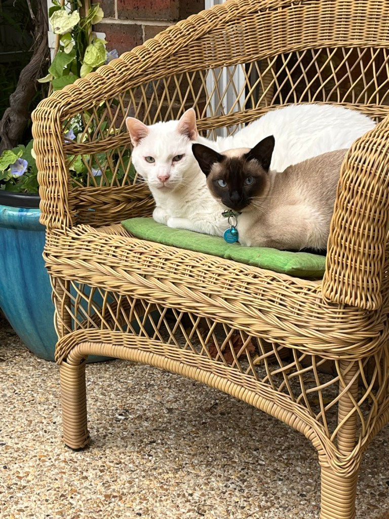 Jaffa, a very expressive little dog.Minty (left) and Crumble sharing a chair outside on the back deck.Crumble wanting a hug.