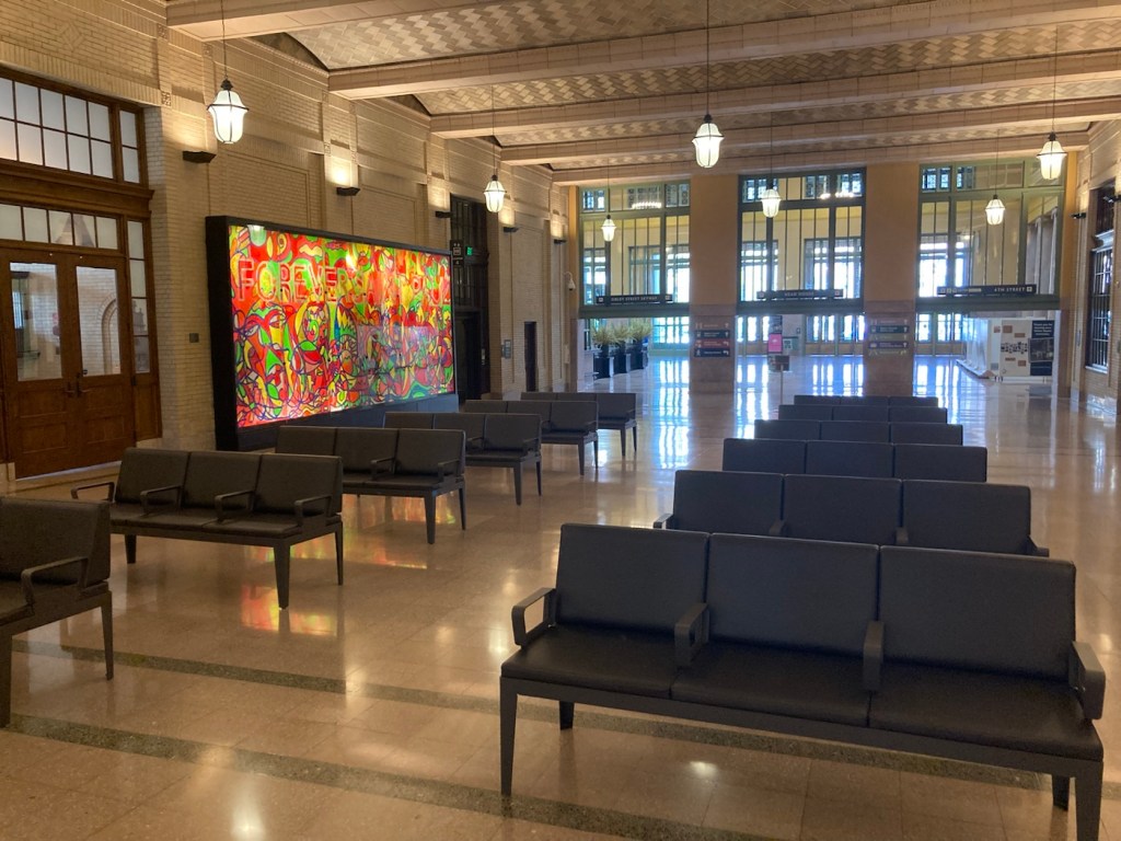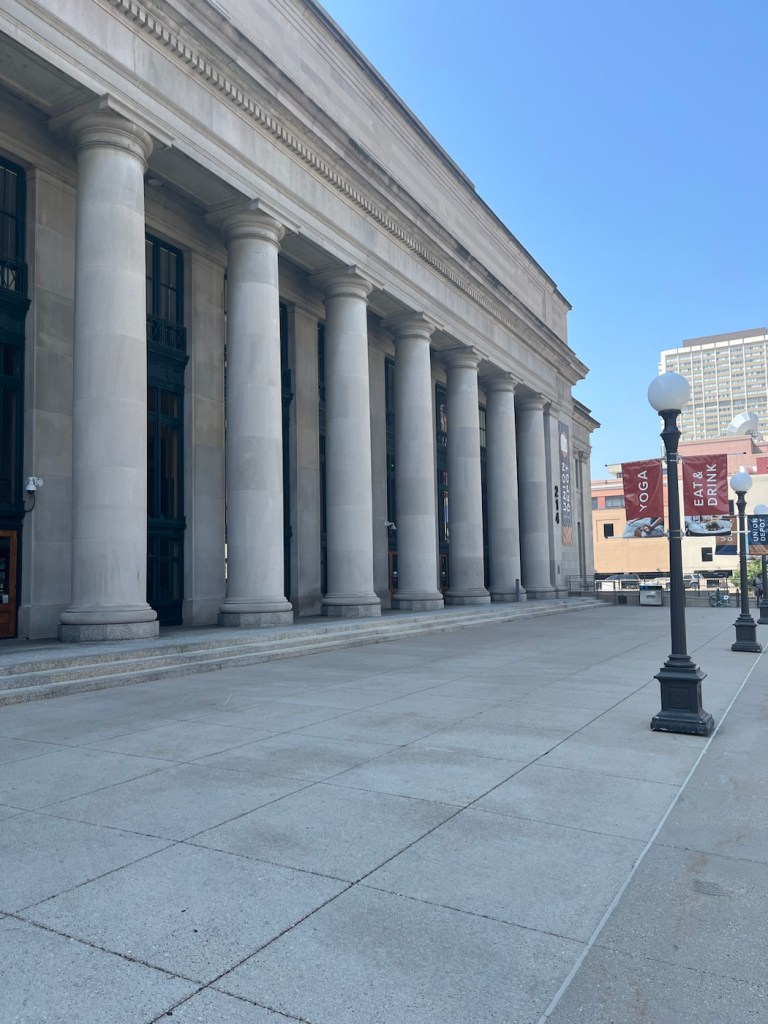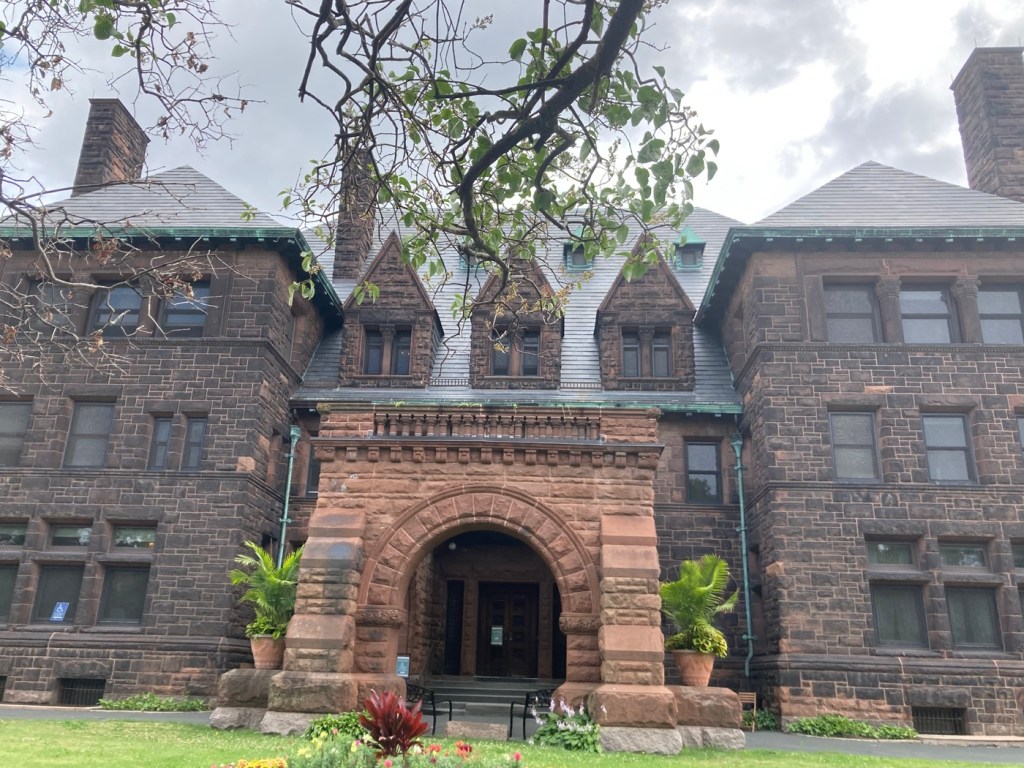 Our walk seemed to be coinciding with New Student Orientation, as we saw a number of tour groups being lead around campus. The campus is attractive, but lacks helpful signage (as in campus maps). Many buildings seemed newer and were impressive. Two buildings we always like to find on campuses are their student unions and library. Unfortunately, these two buildings were unremarkable.