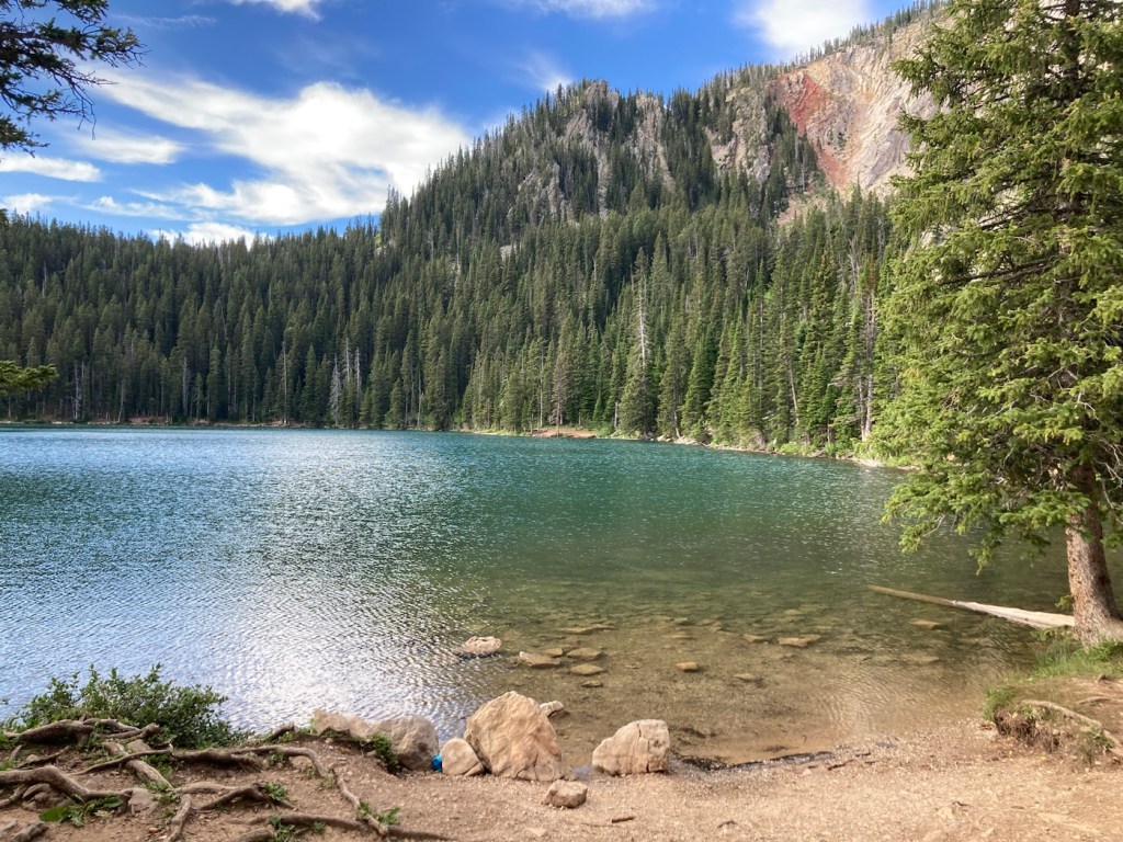 Fairy Lake is an alpine lake in a forested bowl at the base of Sacagawea Peak in the Bridger Mountain Range. It sits at an elevation of 7,557 feet.