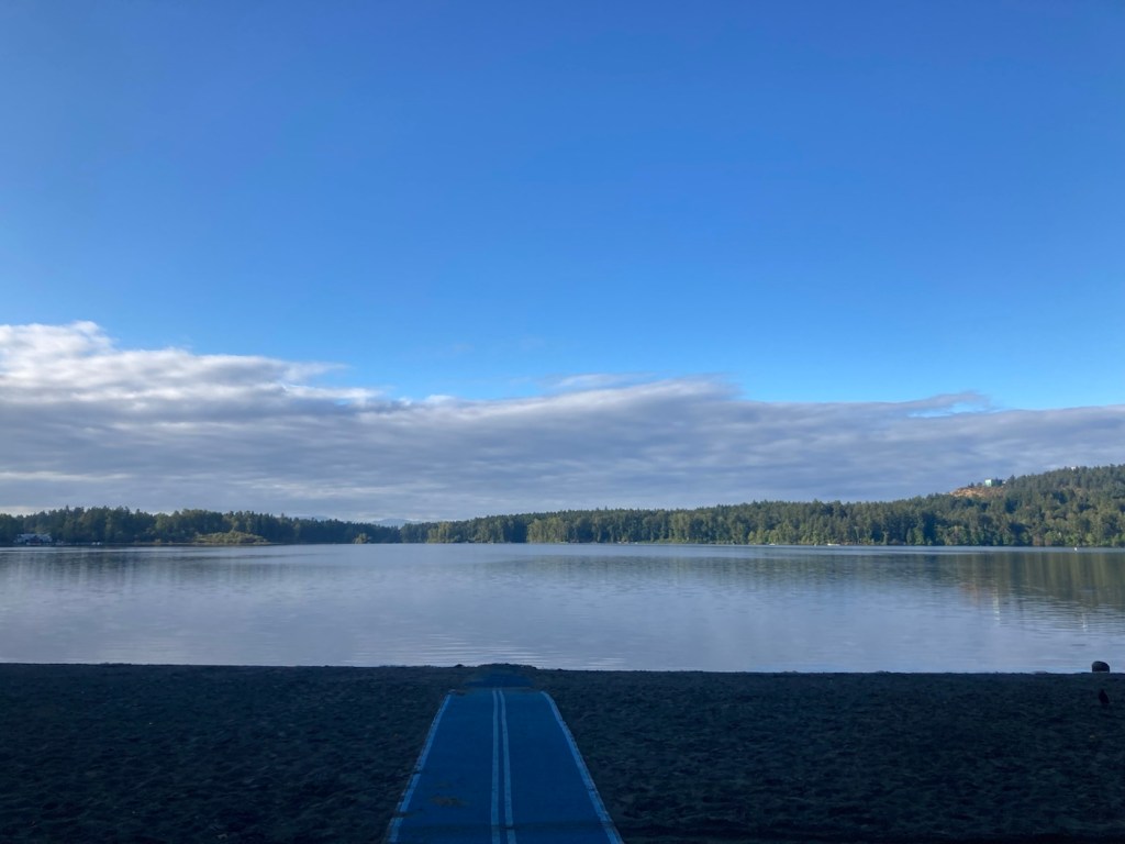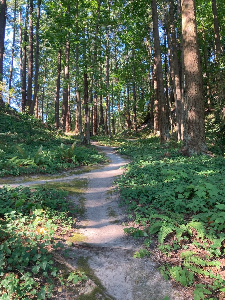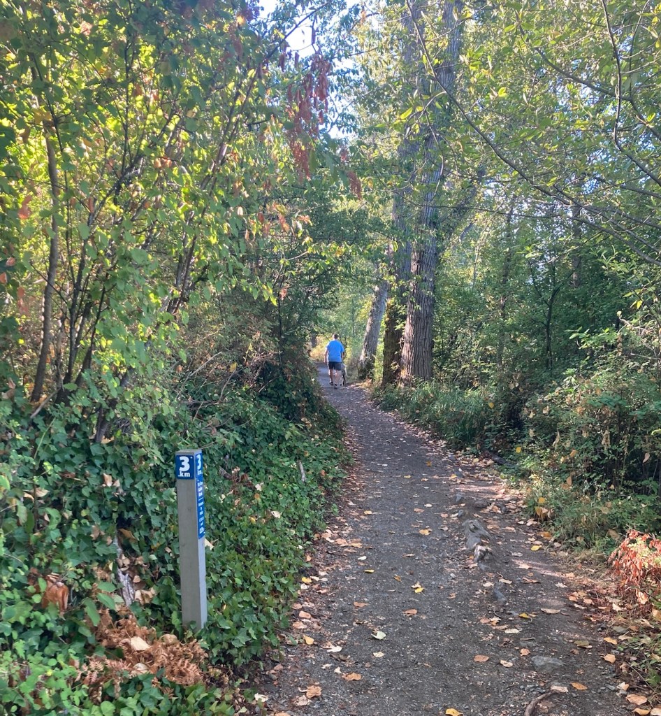 Bob had read about a 9.3 km walking/biking trail around the Victoria International Airport, which is actually located here in Sidney — less than a 10 minute drive from the condo. We thought we’d tackle it today (Saturday) as we assumed the parks might be busy. This trail was also being used but with its length was not crowded.