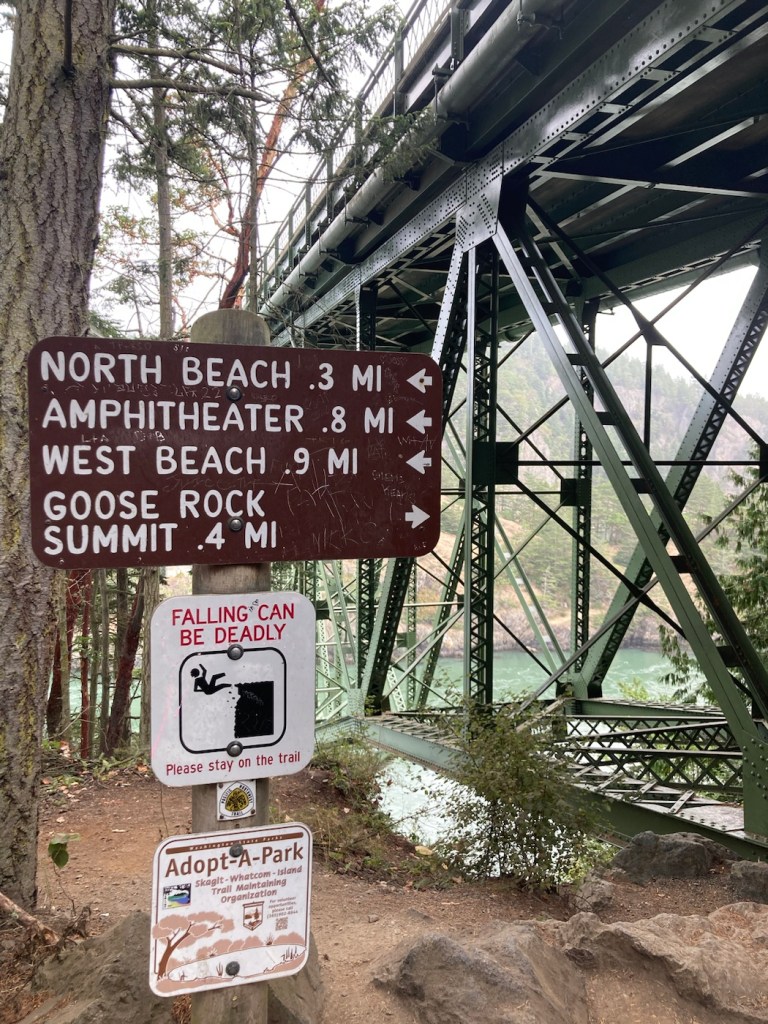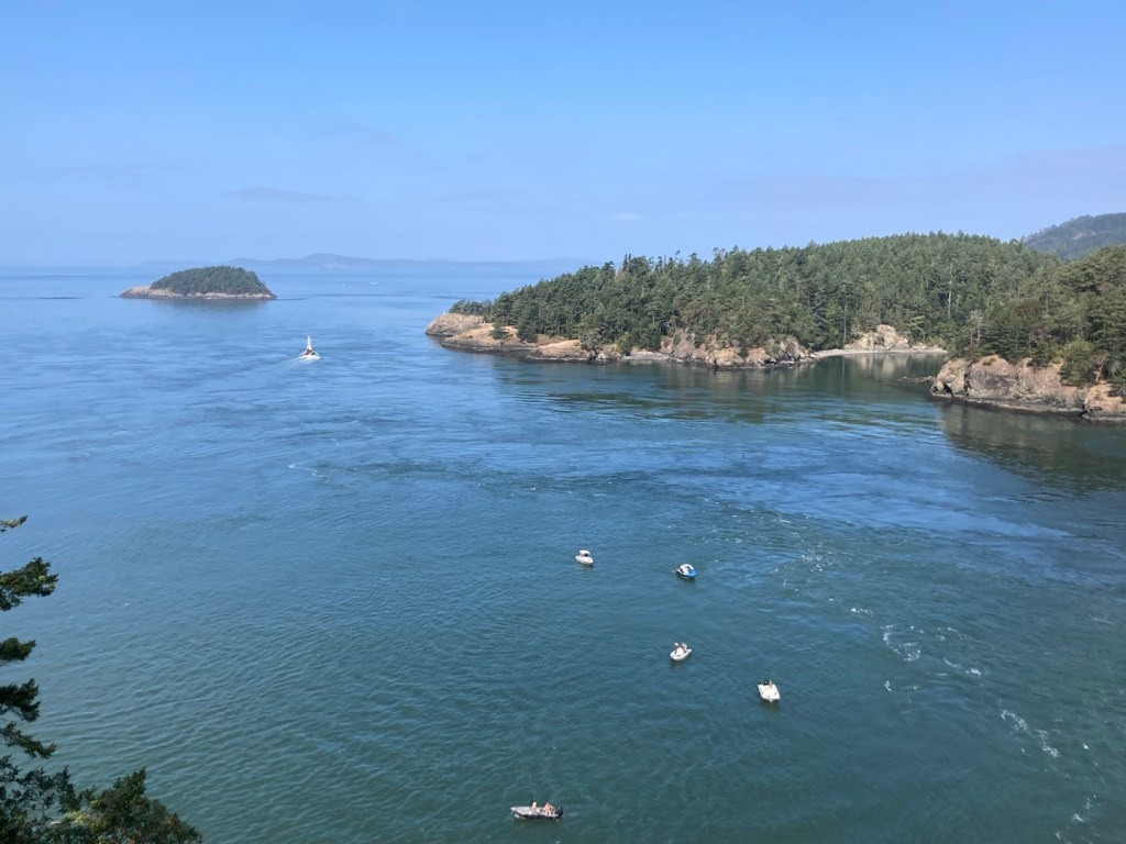 Deception Pass State Park spreads over 3,854 acres across 2 islands, Fidalgo to the north and Whidbey to the south. We drove across Fidalgo Island and the Deception Pass Bridge to get to the park. We happily paid the $10 park fee and went off to explore the Goose Rock Summit and Perimeter Trails before heading down to the bay for a light breakfast as we watched the boats, fishermen, and got a proper look at the impressive bridge.