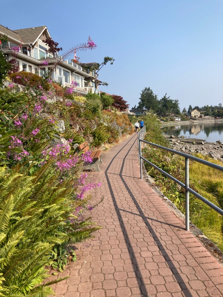 Today, for our longer walk with Rafa, we walked the 2.5k Sidney Waterfront Walkway and Sculpture Walk. This took us by a marina, restaurants, homes, city parks, and public art.