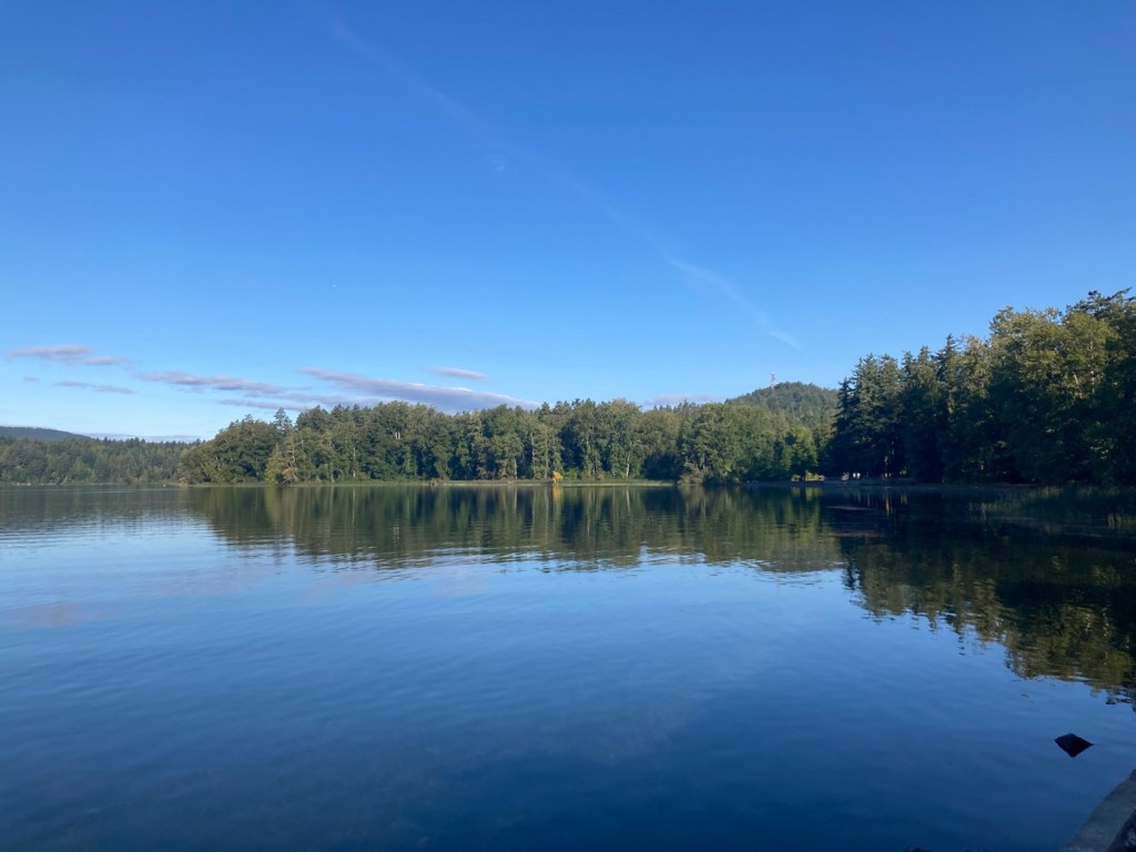 Bob, Rafa, and I did a 10k walk today at Elk/Beaver Lake Regional Park. This is a 1,072 acre park containing Elk Lake and Beaver Lake. We began our walk near Elk Lake.