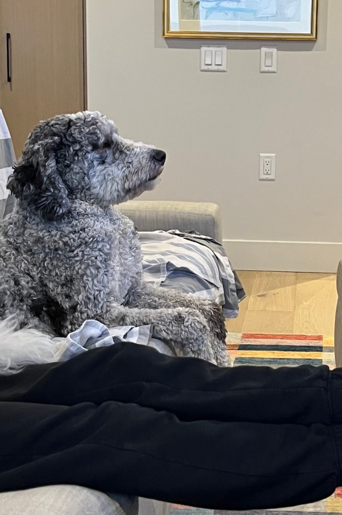 We enjoy watching tv at night with Rafa, as he often seems quite intent on what is happening, especially if there’s a dog involved.