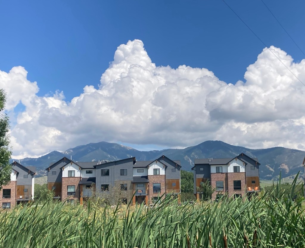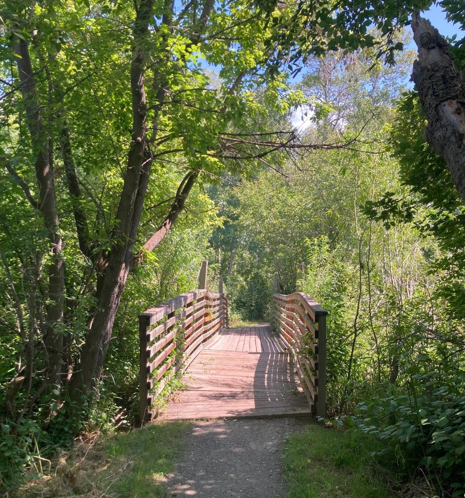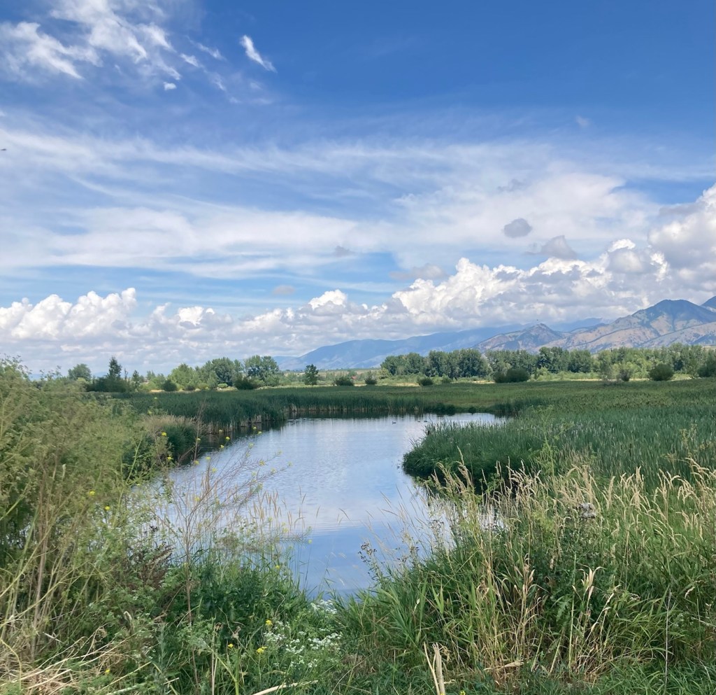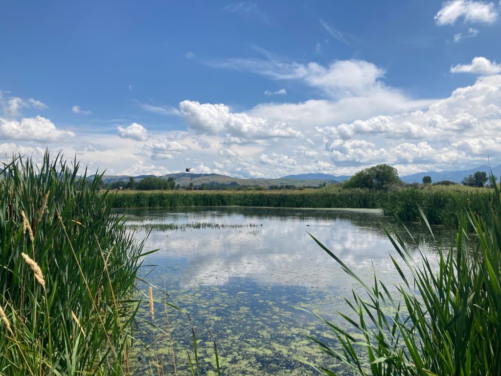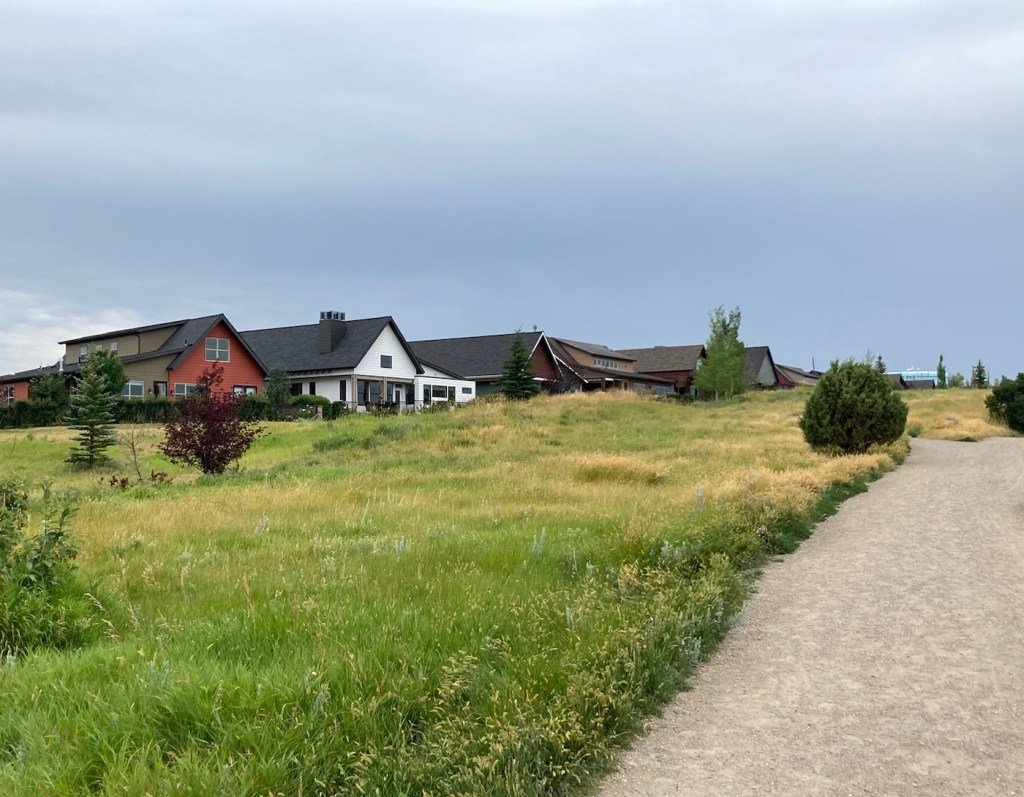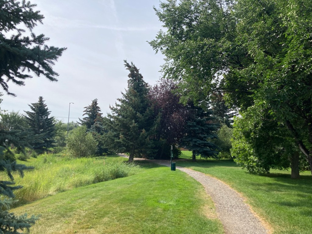 The sign for the parkAn interesting location for a slideLooking back across the first section of the park towards the Bridger Mountains The fishing pond. You can see a dog in for a swim with his human on the side in blue.Another sign for the pond and also the Optimist Club that sponsors an annual youth fishing derby at the pondA rock climbing wall in the parkAnother view of the fishing pond with some benches Signage for the Main Street to the Mountains system and directions for the West Side TrailSome runners passing us on the trail, which was mostly gravel.One of the small bridges along the pathA unique little library or pantry, we didn’t look inside.Some of the lovely greenery along the pathAnother view of the path. This part had these big stones alongside it.Some lovely newer homesComing to the end of the urban path