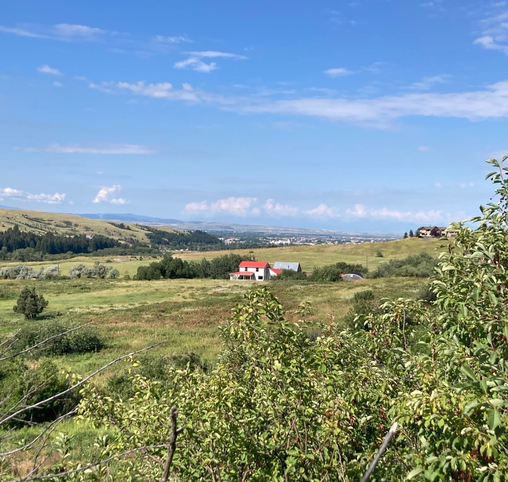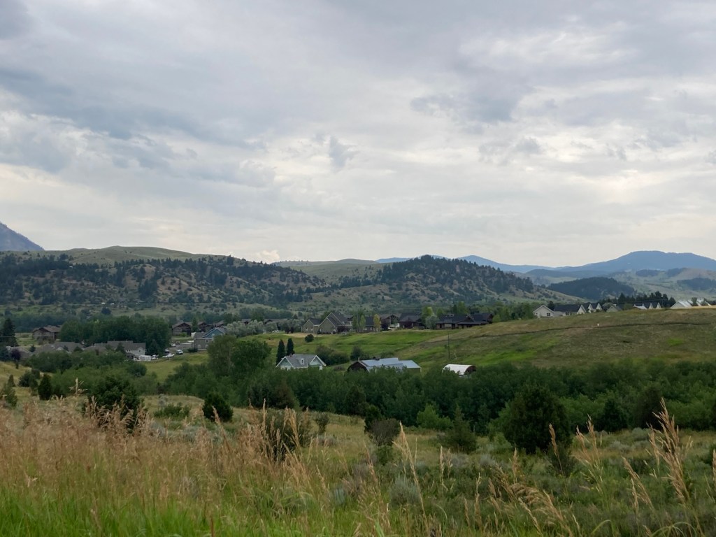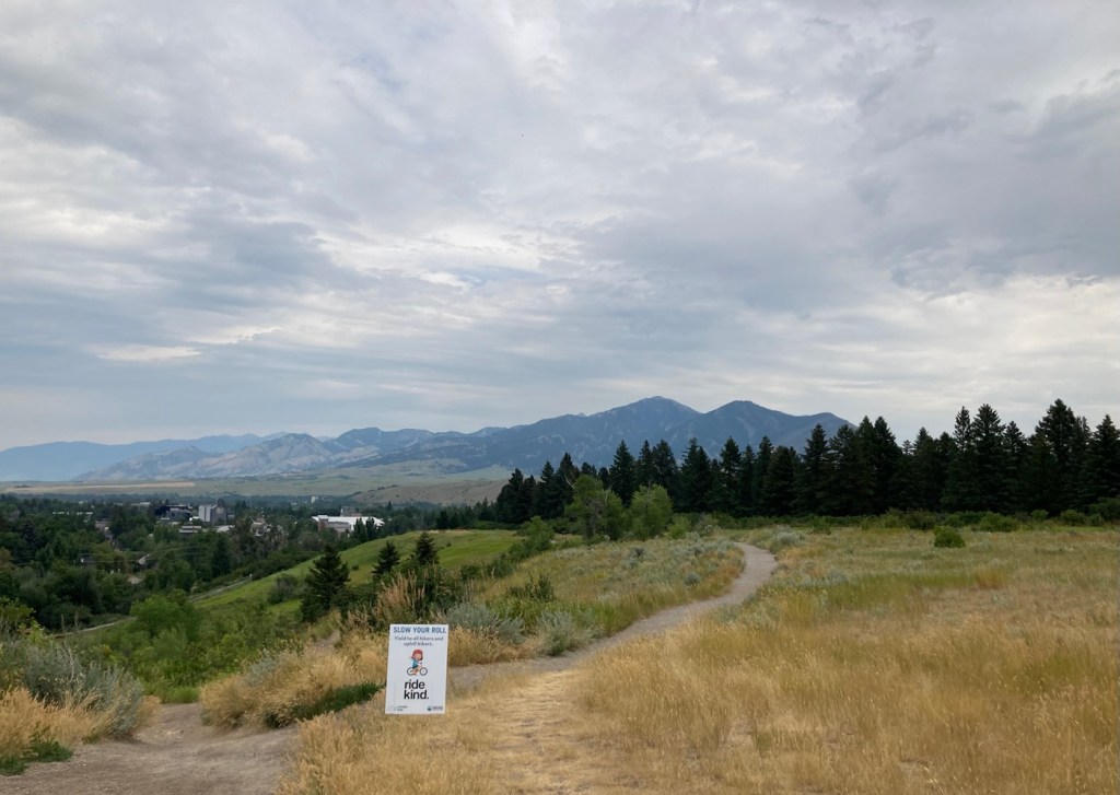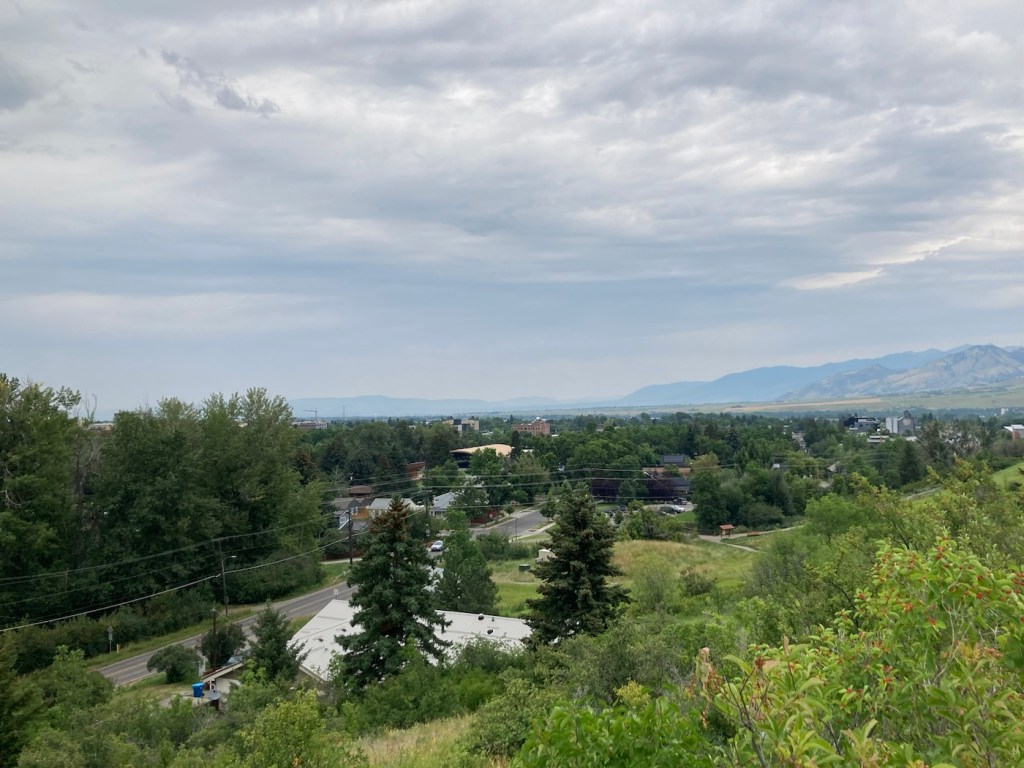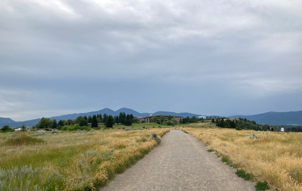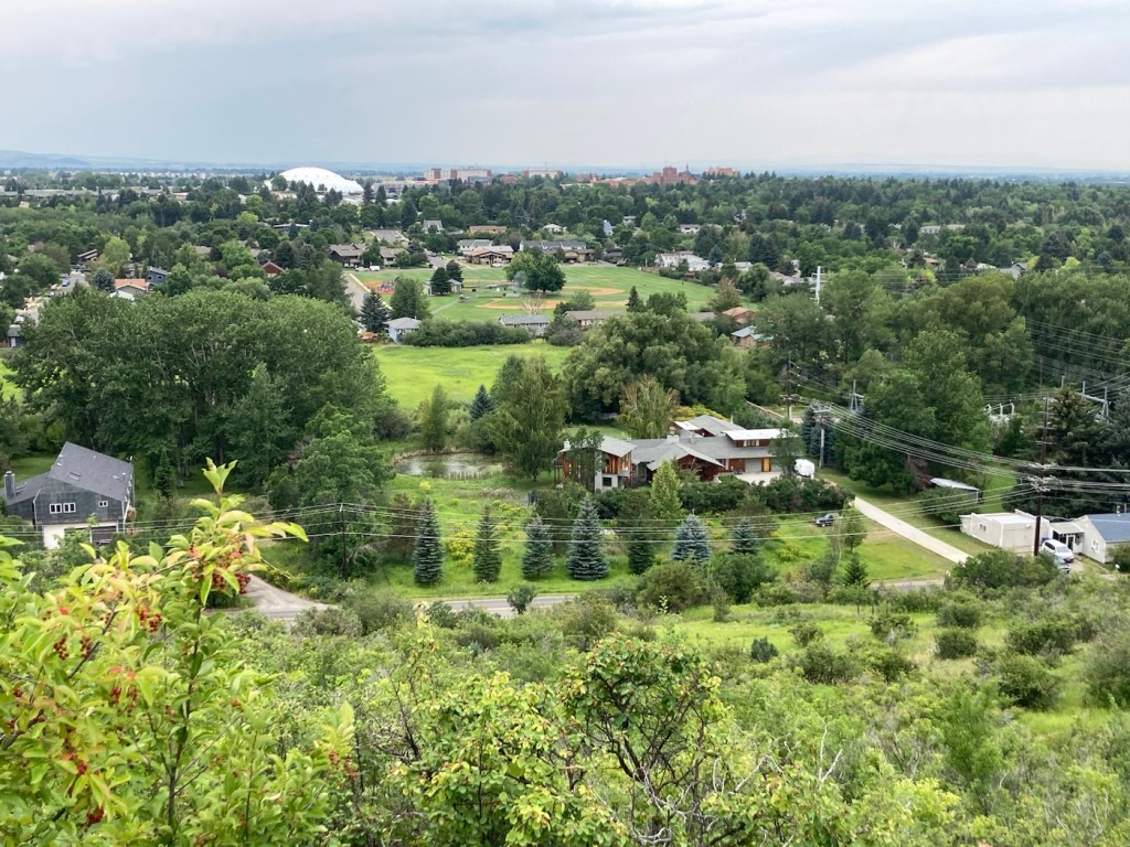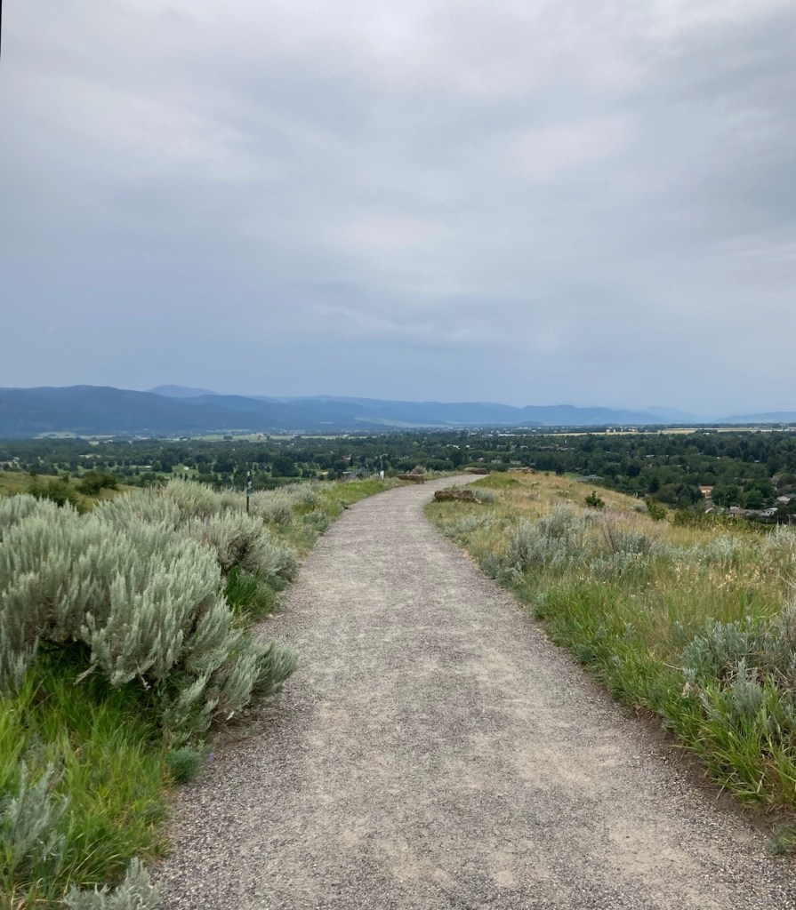 Today, we did a little over five-mile hike in and around Burke Park, which is near the sculpture garden we had explored on our first night in Bozeman. Listed by the city as moderate exertion, trails in the park take you up Peet’s Hill, which is supposedly the best sunset view in town . After walking the main trail (there are many) through the long, narrow parkland, we connected to a few other trails towards the west of town.