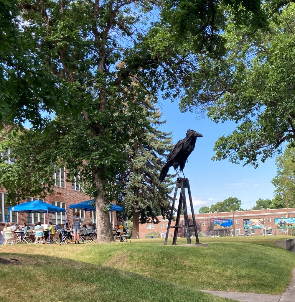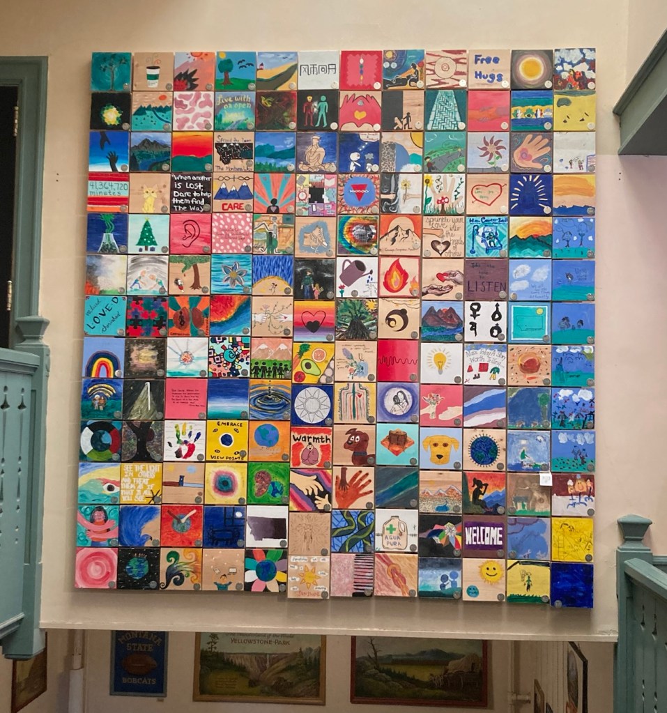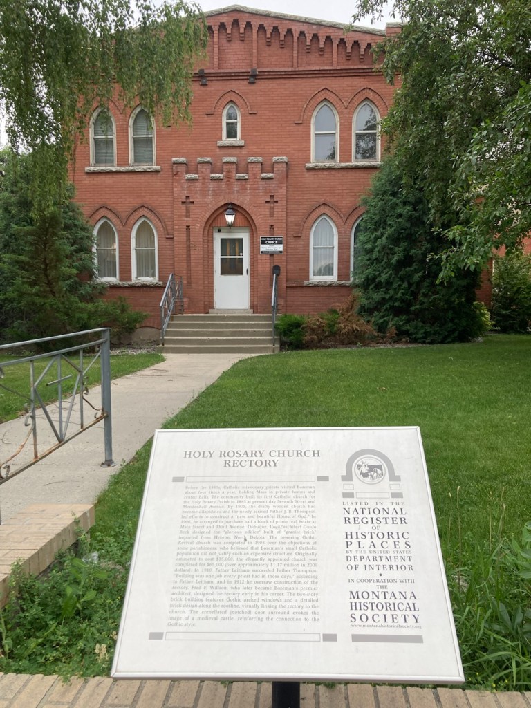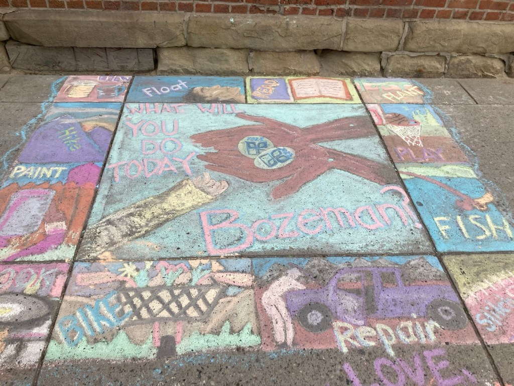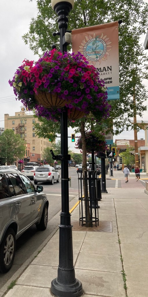 Our first stop was at the Community Food Co-op.The cute sign for the Lewis and Clark Hotel. Hotel prices are crazy here. Almost all rooms go for over $300 per night right now.A very Art Deco looking former school that now appears to serve as an educational foundation The Gallatin County History MuseumGallatin County Courthouse A designated historical building on Main StreetLots of street lamps with banners and hanging flower baskets on MainFormer Hotel Baxter, which is now an event space and also houses a pubNot sure what this currently is but thought it was a lovely building They had had a chalk art event downtown yesterday, so the sidewalks were colorful A pocket park on a cornerApparently, John Steinbeck was a real fan of Montana