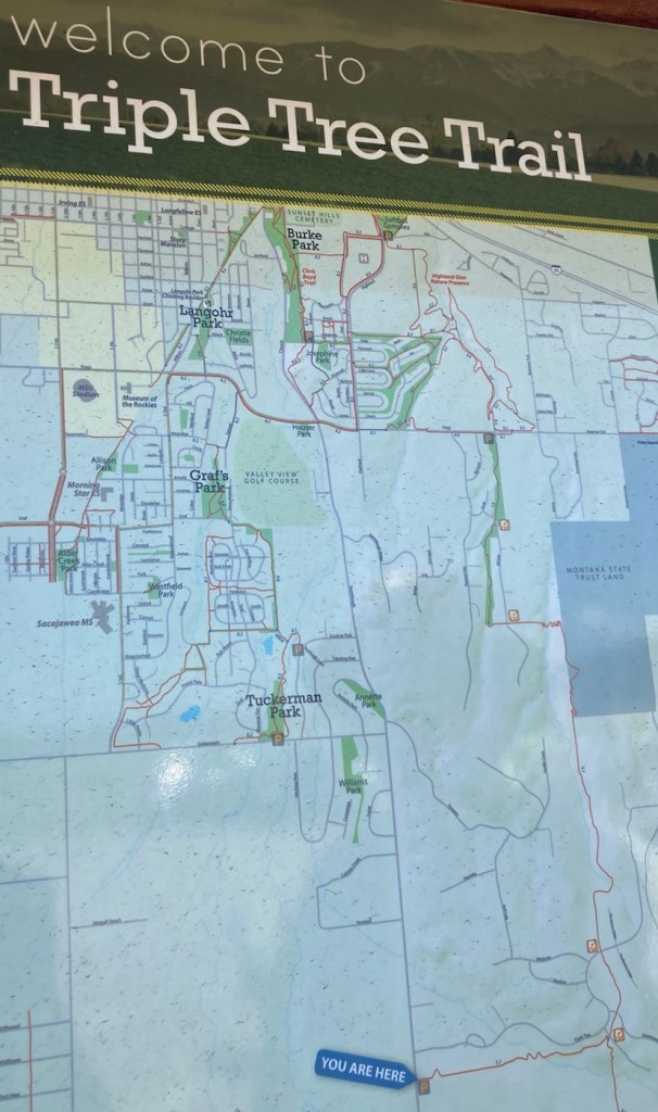 Before getting into todays outing, a few fun facts about our current residence. In 2020, Bozeman had a population of about 54,000, which makes it the 4th largest city in Montana. It lies between the Gallatin and Bridger Mountain Ranges. It is the county seat of Gallatin County, and it has established an impressive Main Street to the Mountains Trail System, a part of which we walked today.