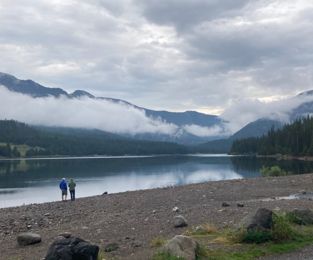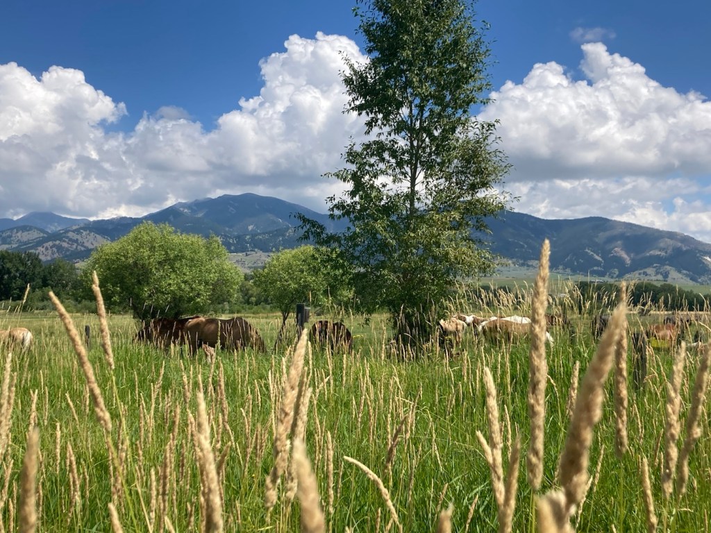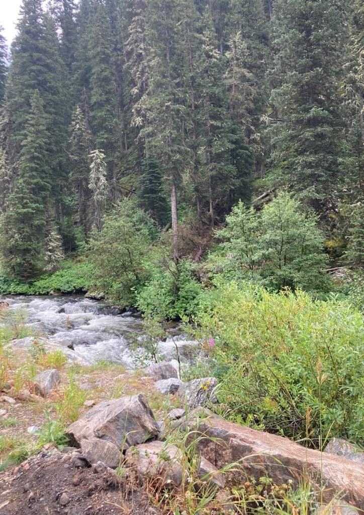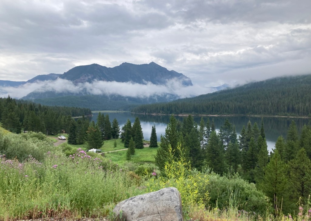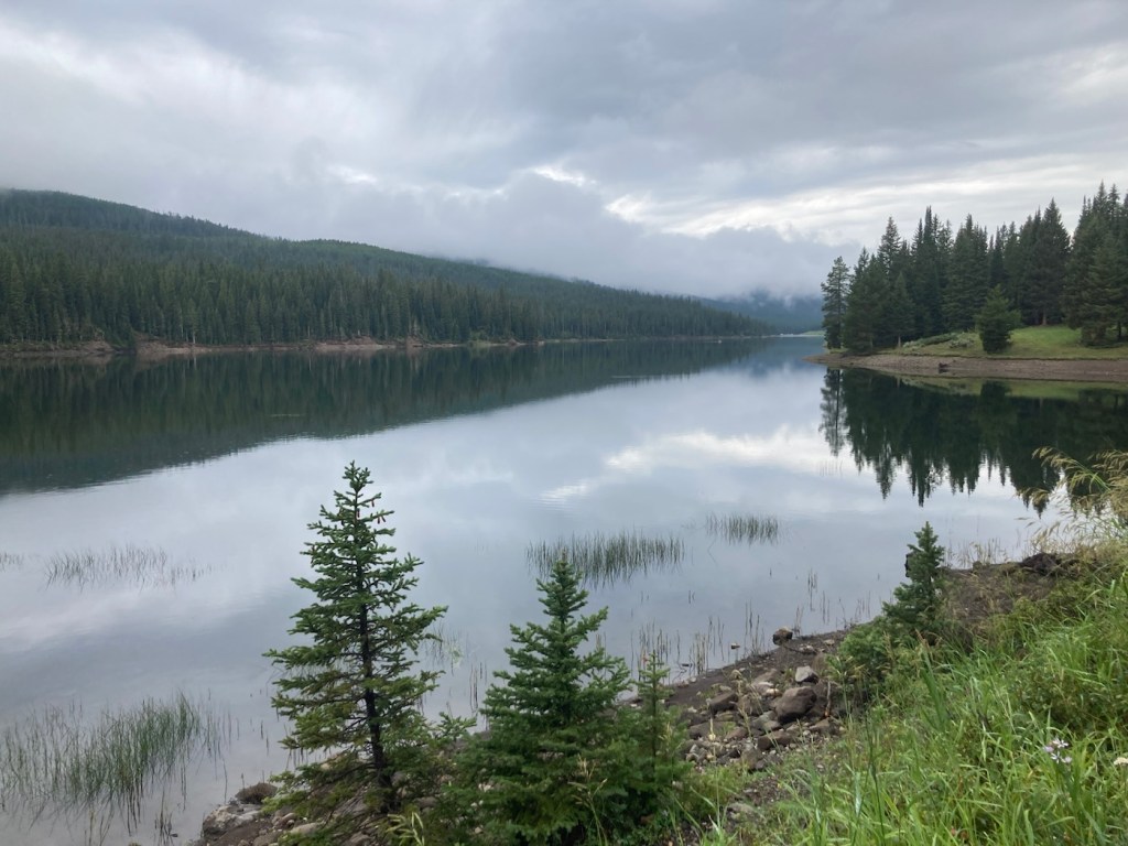 Today, we headed out for Palisade Falls because we wanted to see the waterfall, but also because there is a big music and art festival in Bozeman so we wanted to avoid activities near downtown to avoid traffic, which doesn’t seem to move well here. As per usual for the past few days, the sky was overcast, but it gave us some great views of low clouds against the Gallatin Mountains.