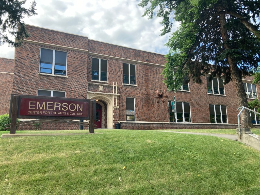 One of the places that Bob and I had read about to visit is the Emerson Center for the Arts and Culture. We headed there today before running some errands. The center is housed in the former Emerson School, named after Ralph Waldo Emerson. The building was constructed from 1918 to 1920, to serve as an elementary and junior high school. It ceased being used as a public school building in 1992.