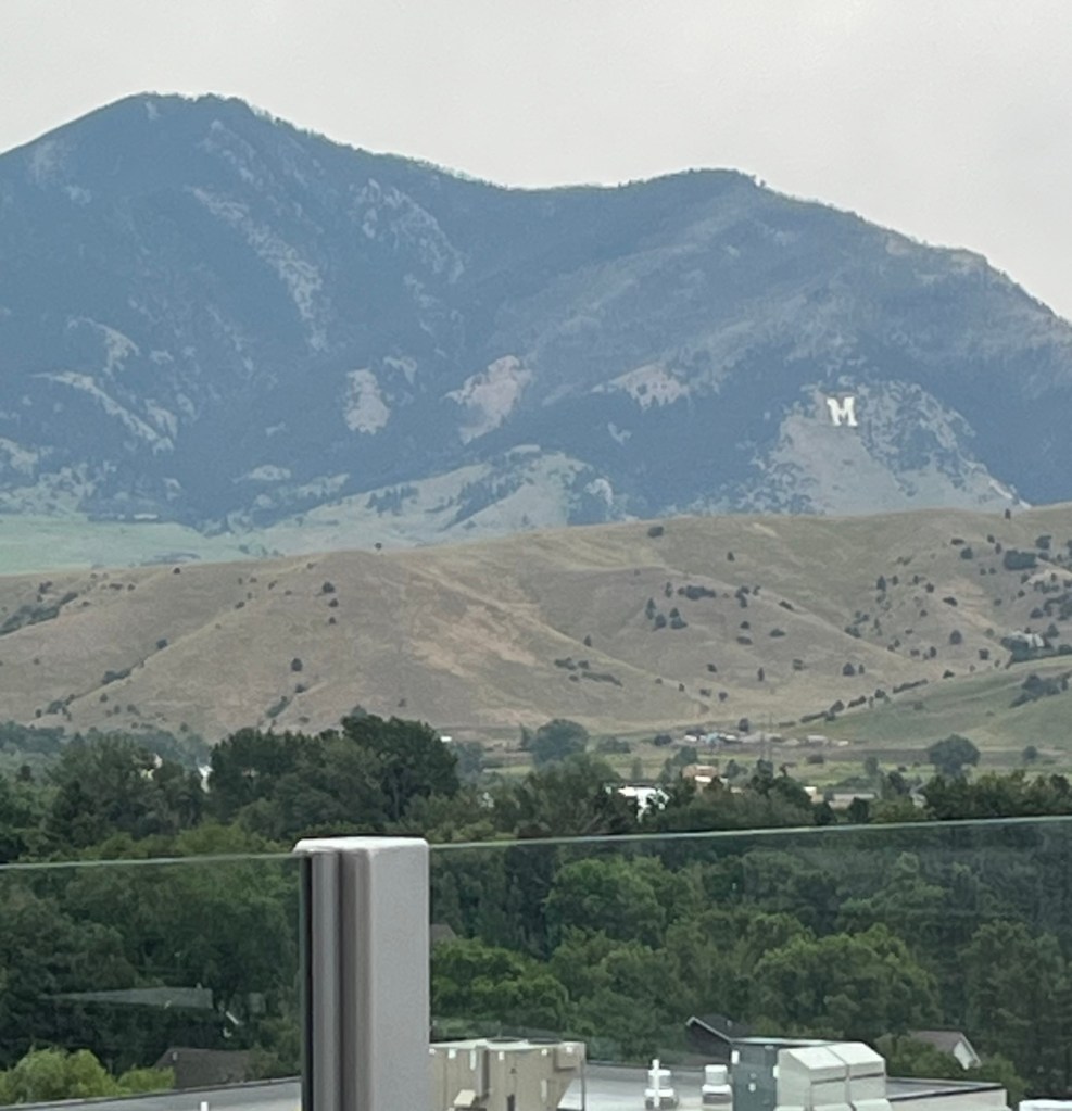 We liked that the new hotel had incorporated a part of an older building for the facadeThe view from the window above the A in the prior photo A zoom in on the mountains with the M for Montana State