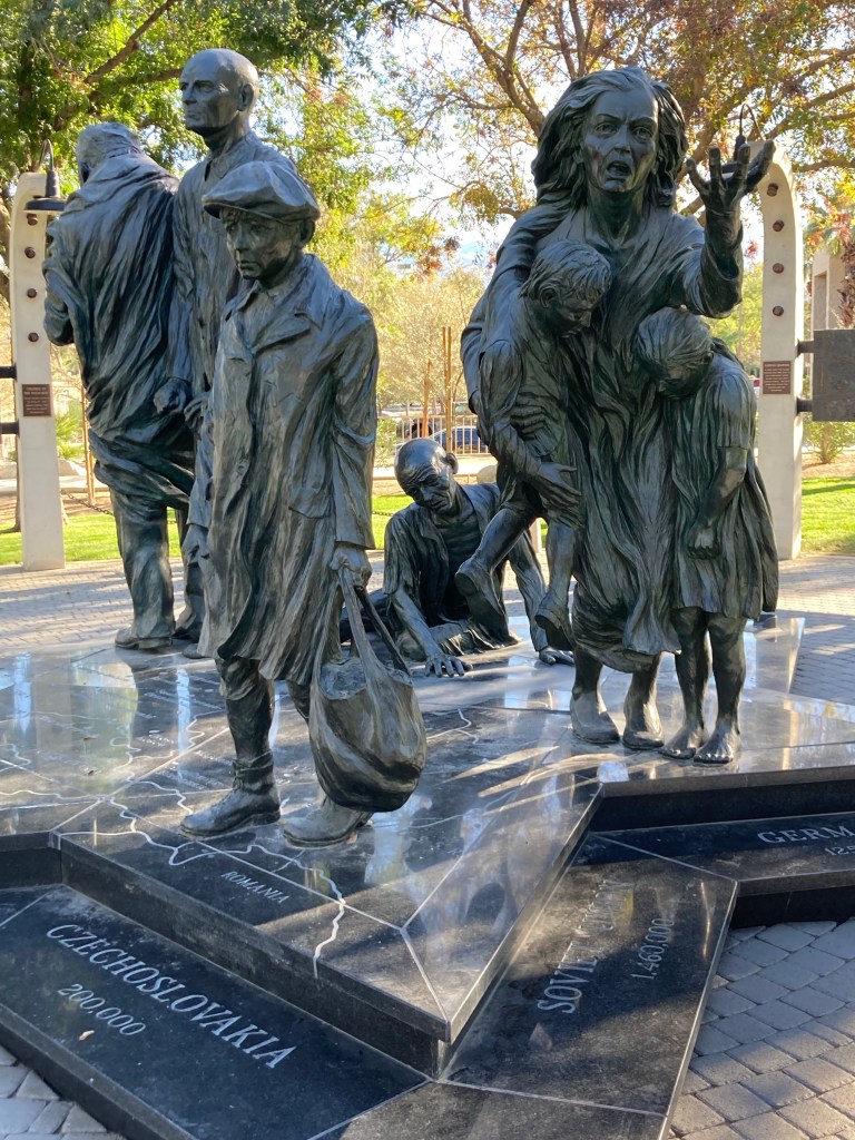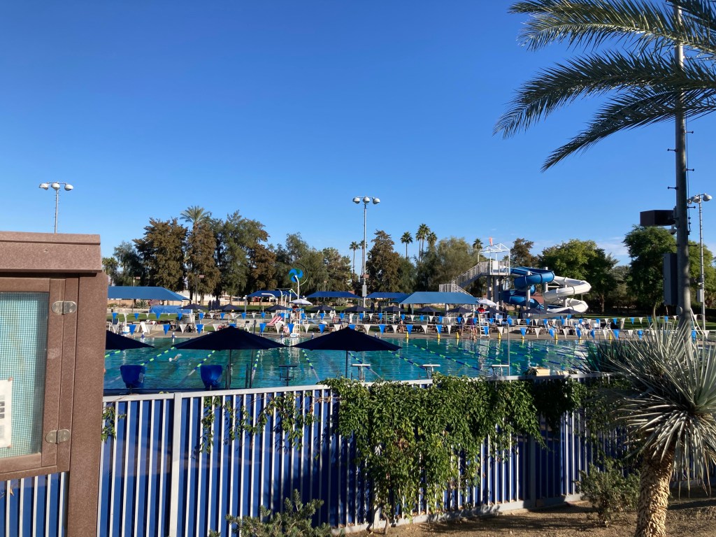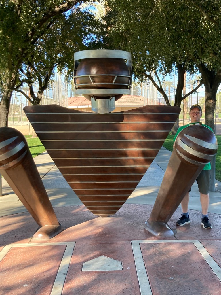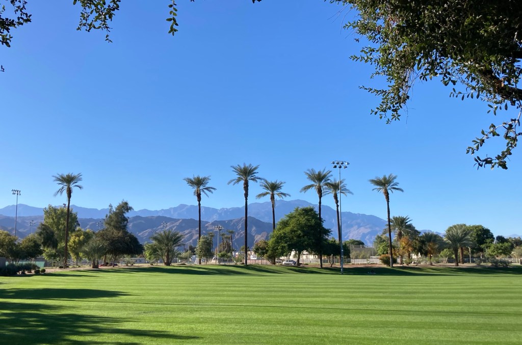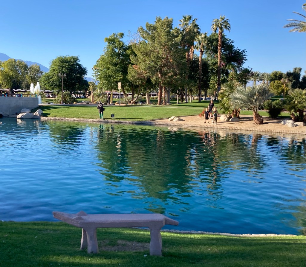We were headed to the Civic Center Park to walk the public art trail. The Civic Center Park is a 70 acre park that is home to the city of Palm Desert municipal offices as well as recreational and sports amenities, five picnic pavilions, an amphitheater, two skate parks, and a dog park, along with the art walk. It is one of the most beautiful parks we have ever visited.