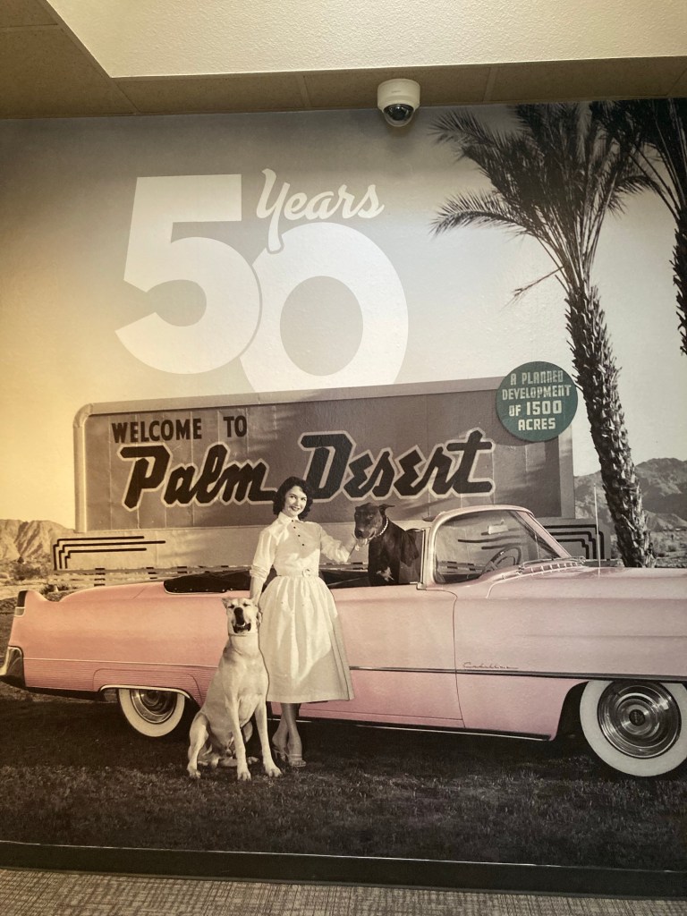 After Bob and I descended from atop the tramway, we headed to Palm Desert, California. The Palm Springs area contains a number of communities, and Palm Desert is another city in the Coachella Valley that is approximately 14 miles east of Palm Springs. It has a population of over 51,000, and has the reputation of being a higher end, flashier version of Palm Springs.