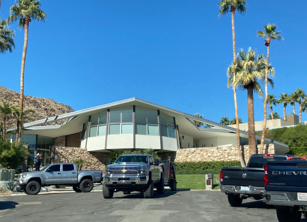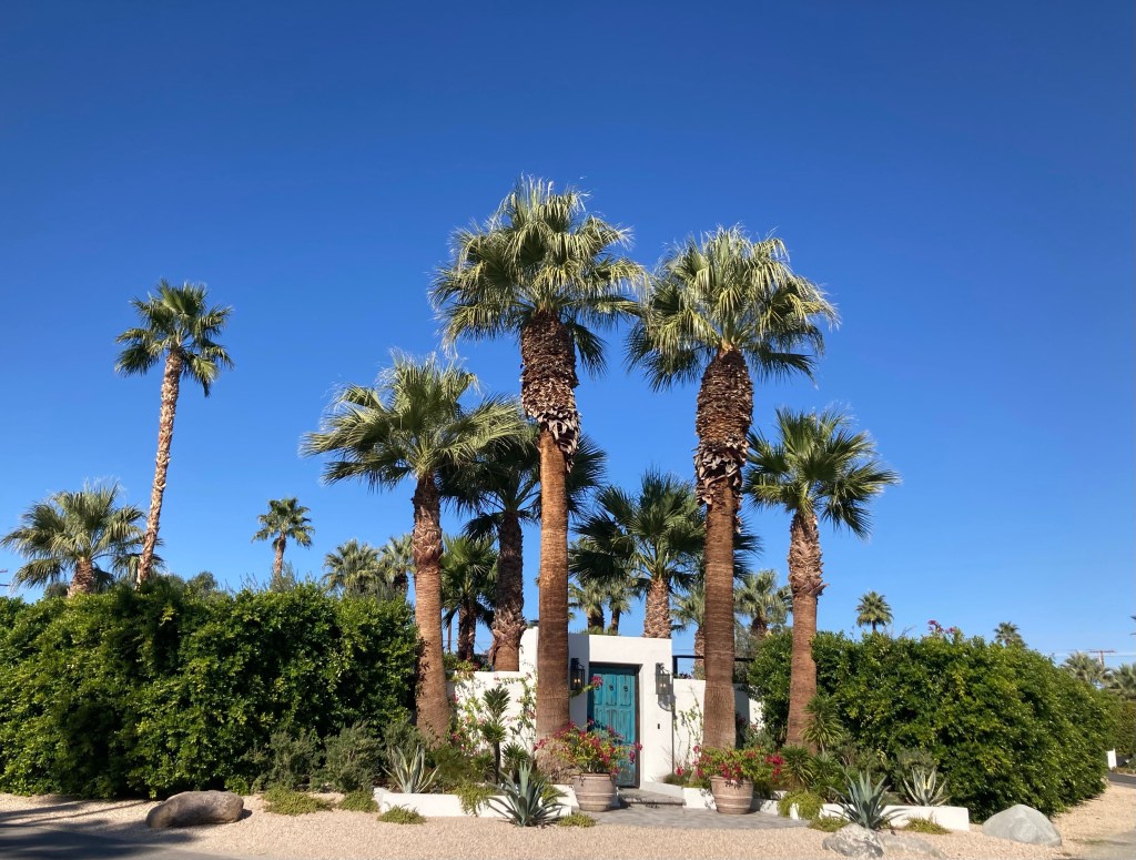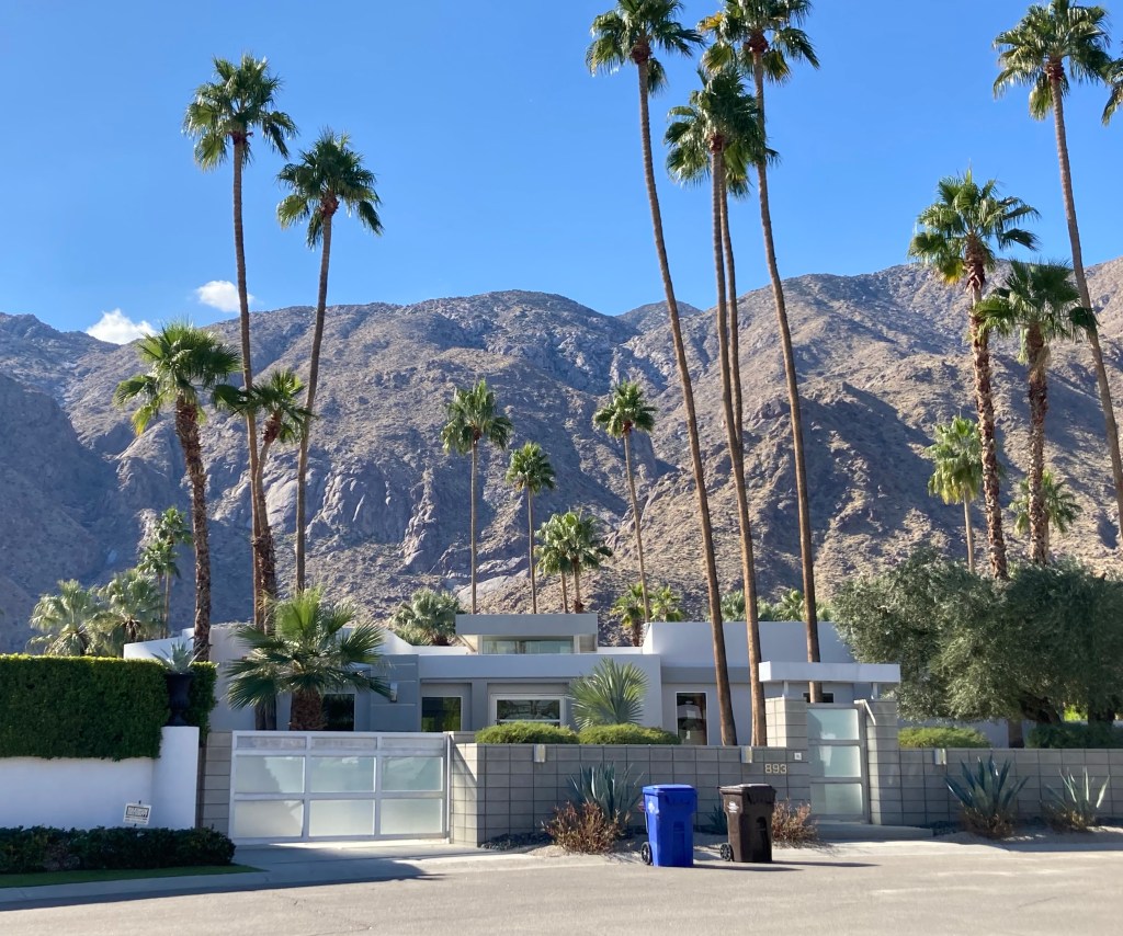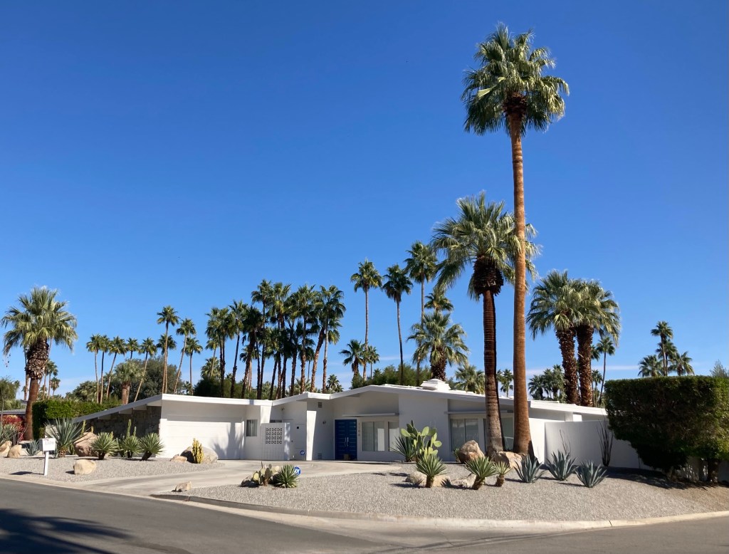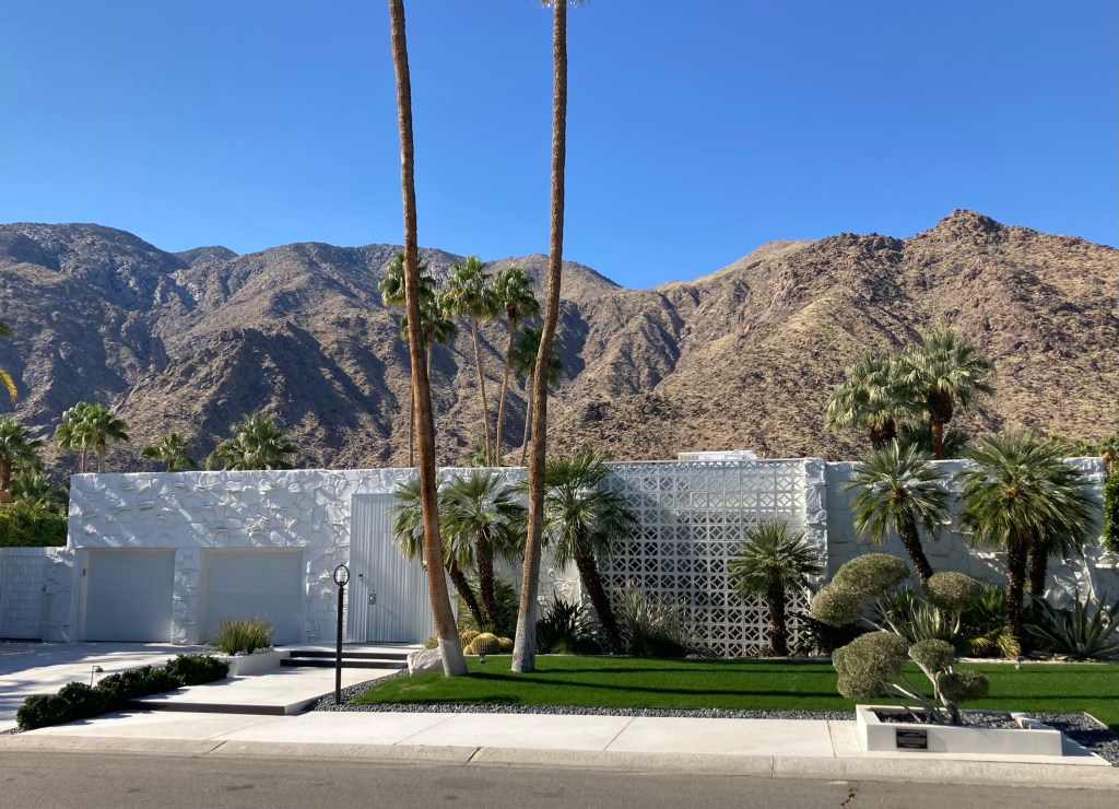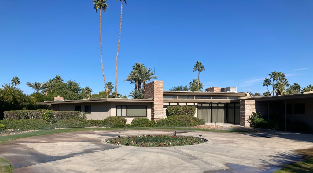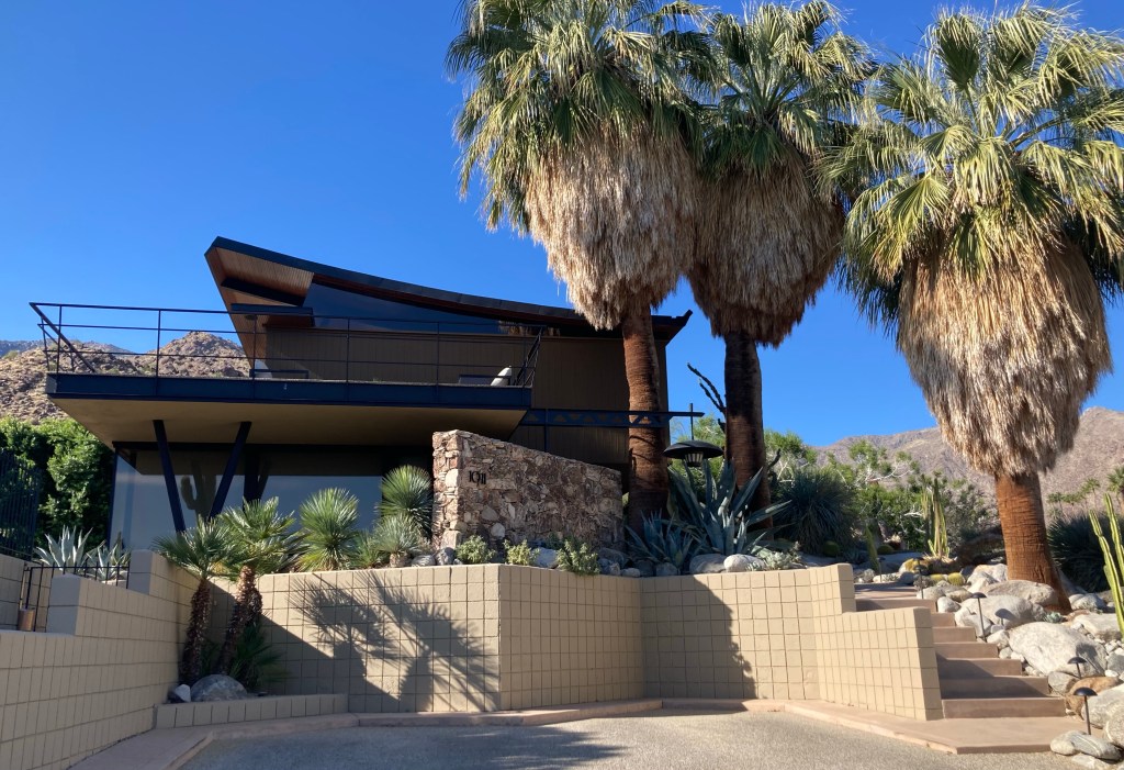 This is what our map tells us of Desert Modernism, which arose in the middle years of the 20th Century. ‘It is notable for its use of glass, deep overhangs, natural and manmade materials, and indoor/outdoor spaces.’ The indoor/outdoor building is big here with lots of patios that flow inside and vice versa. The airport is even indoor/outdoor in the main concourse. The homes are very much understated in comparison to the high end homes of today.
