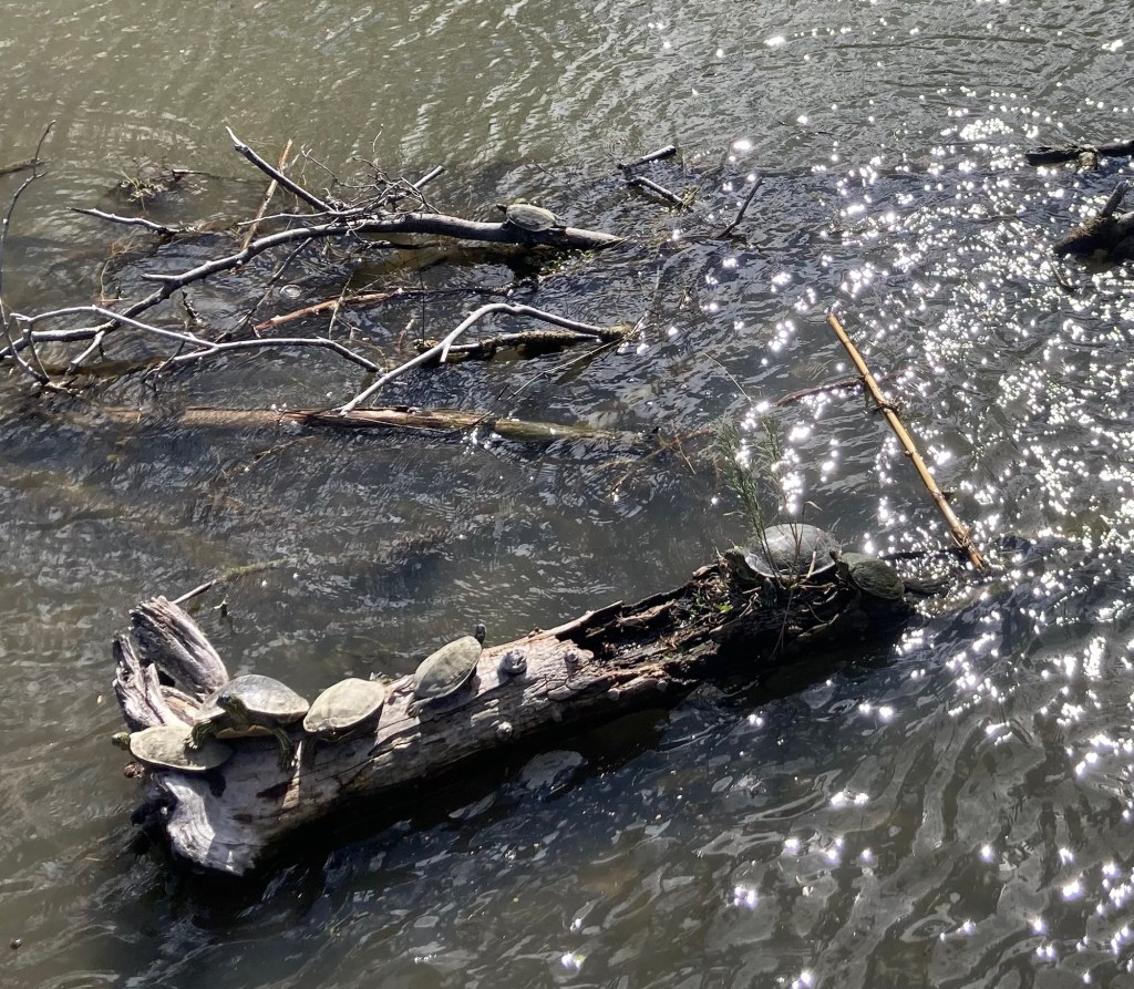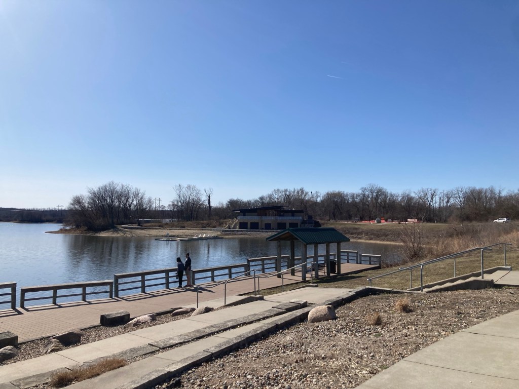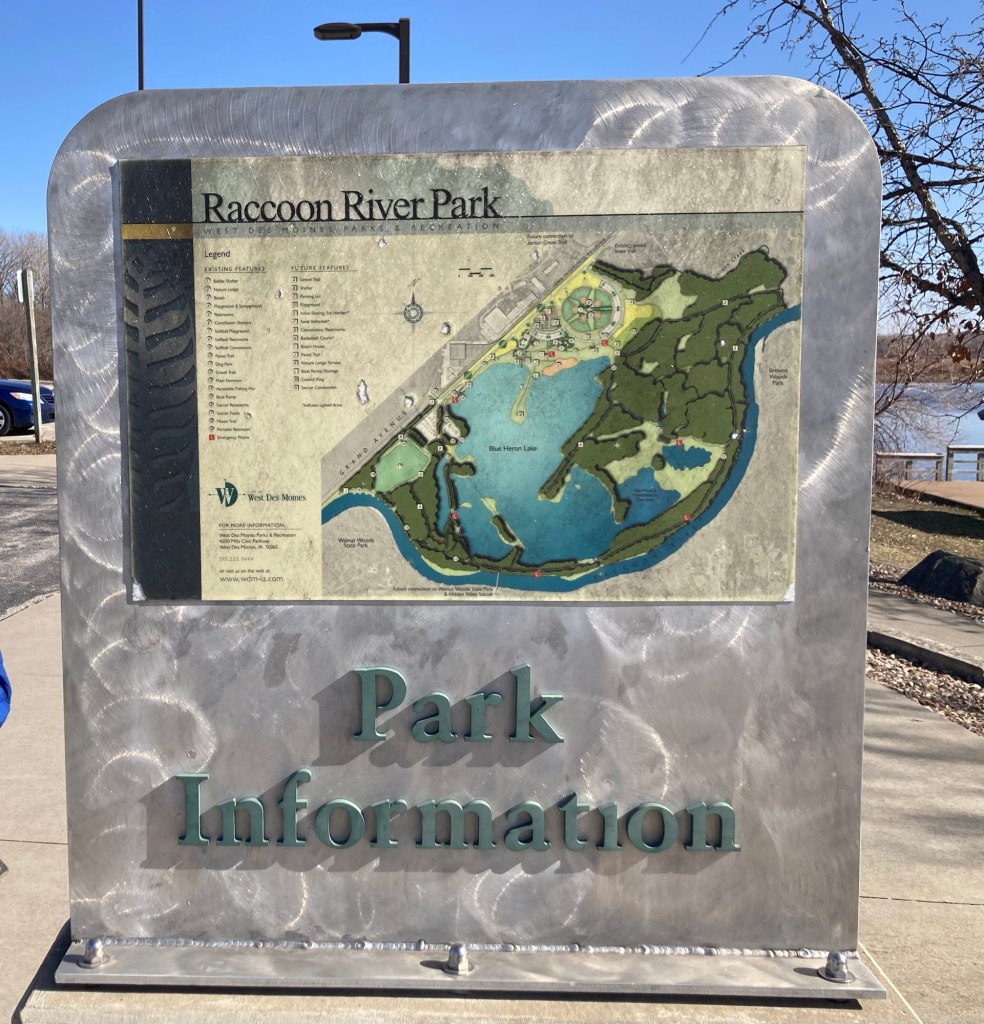 The weather has been gorgeous, so we have been getting some walks in as well, mostly exploring the neighborhood. Today though, we made a quick 10 minute drive to Raccoon River Park to check out a non-concrete trail that had been recommended to us. We walked 3.2 miles around an asphalt and crushed rock path around Blue Heron Lake in the park.